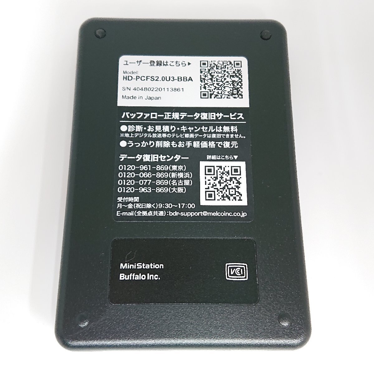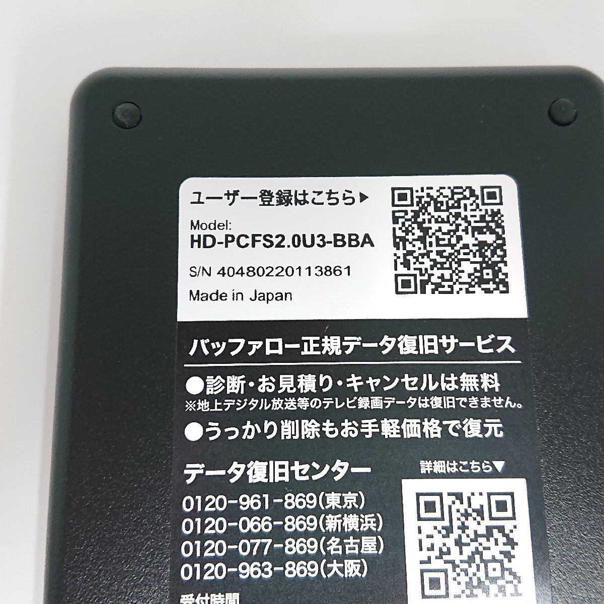 2235# バッファロー/BUFFALO ポータブルハードディスク HD-PCFS2.0U3-BBA カラー/ブラック 容量/2.0TB 電源/USBバスパワー 【0924】