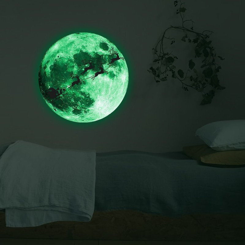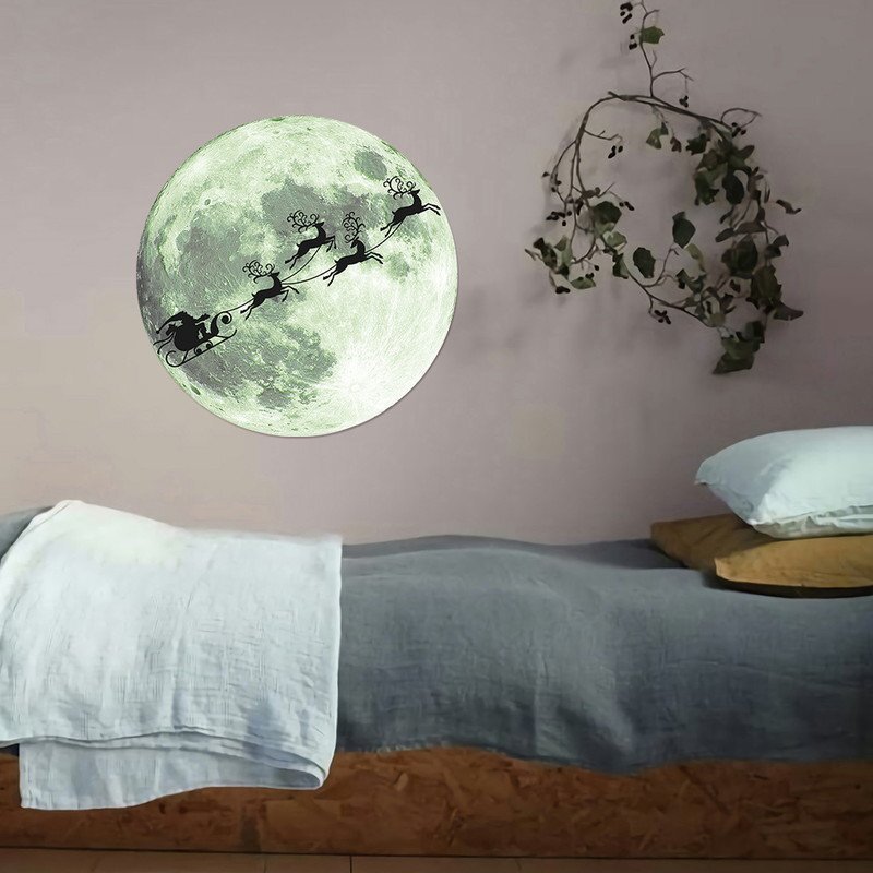 暗闇で光る☆蓄光 Xmas 月 シルエット 20cm 走れソリよ~♪ ウォールステッカー パーティー イベント 風景 シール