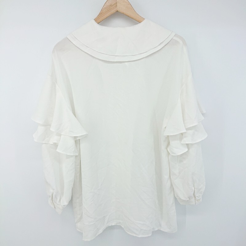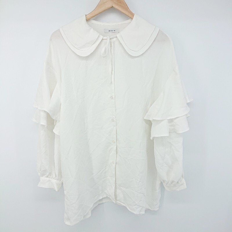 ◇ JEANASIS ジーナシス シアー フリル 大人かわいい 長袖 ブラウス カットソー サイズF ホワイト レディース P