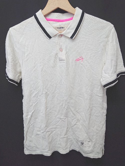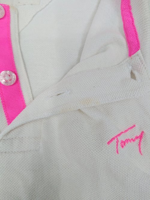 ◇ ⊂ TOMMY HILFIGER トミーヒルフィガー ワンポイント 半袖 ポロシャツ サイズM ホワイト ピンク」 レディース E