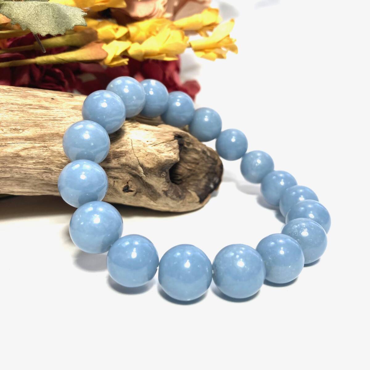 こちらは、エンジェライトの12mm玉を使用したパワーストーンブレスレットです。シンプルなデザインは、男女問わずどんなコーディネートとも合わせ易いブレスレットです。サイズは内径約17cmです。(サイズ変更の場合は取引ナビにてご連絡をお願いします。) 数に限りがございますので気になる方はお早めにどうぞ。