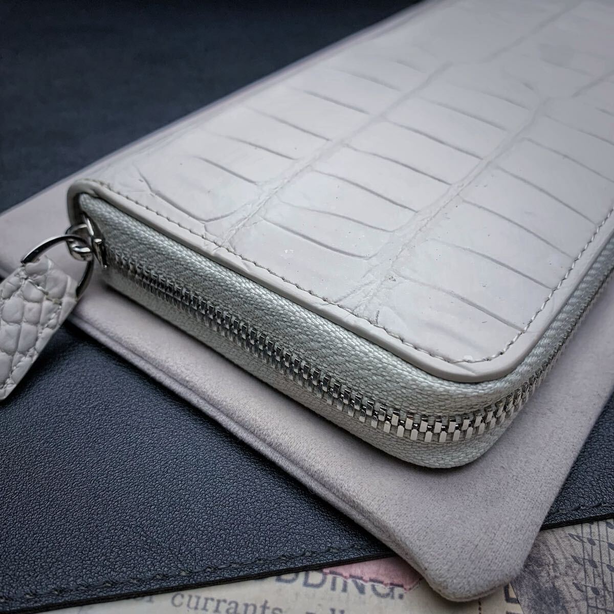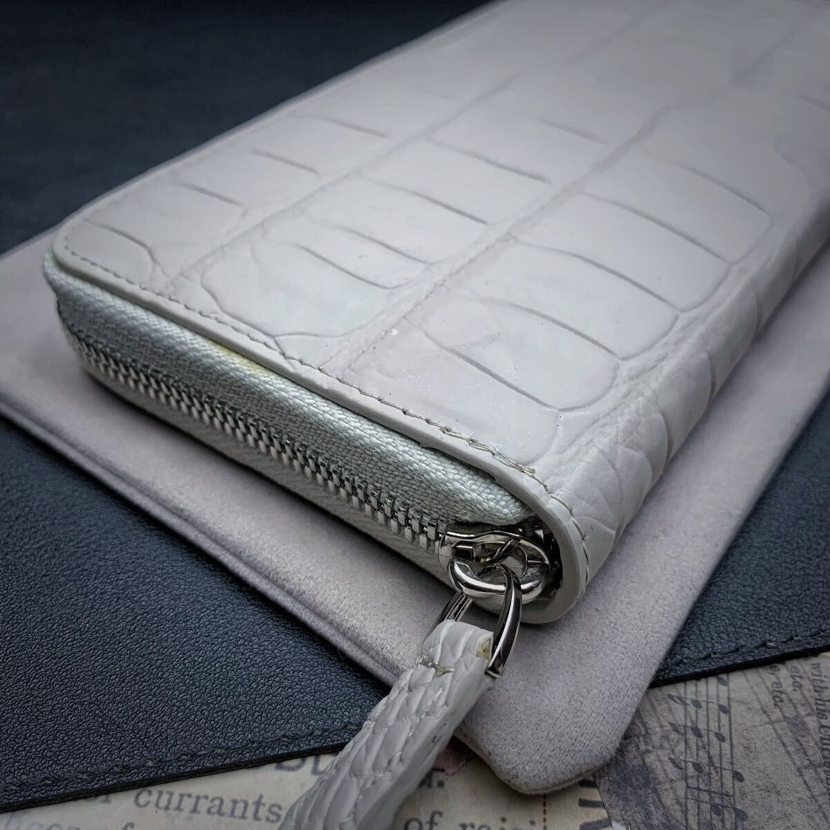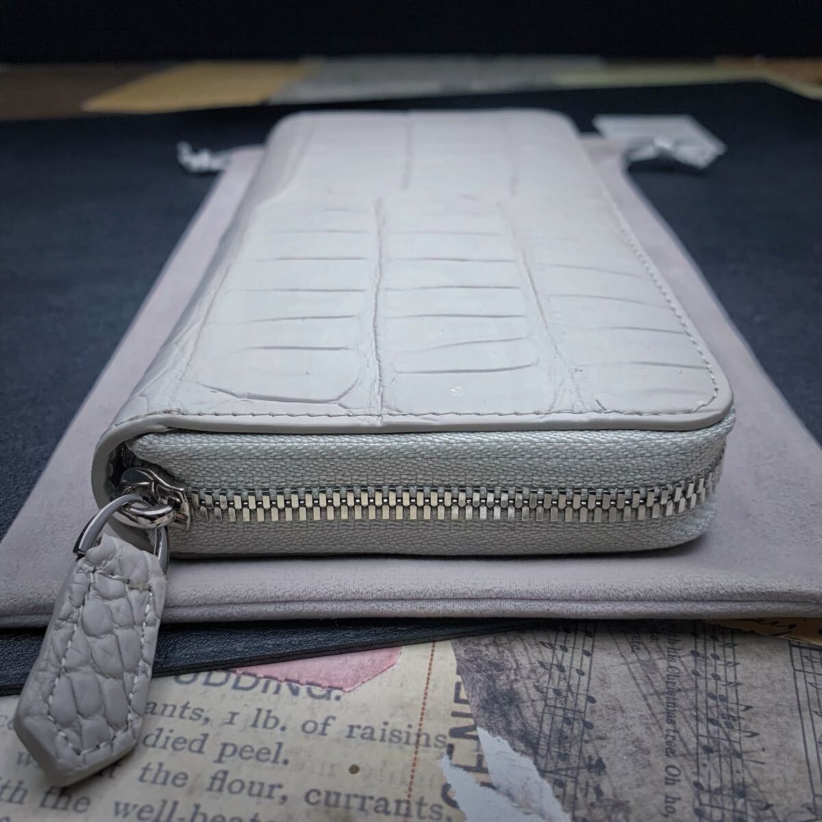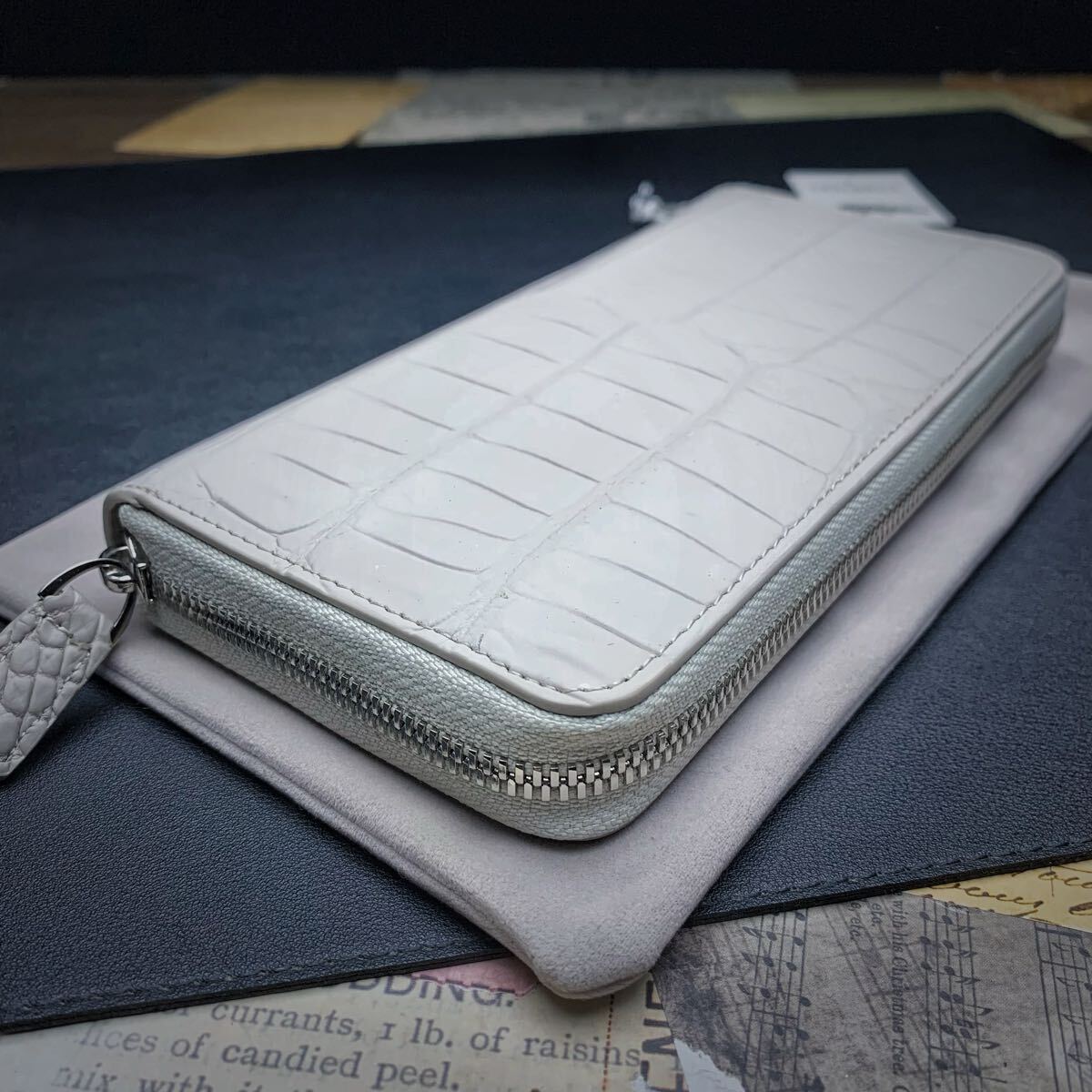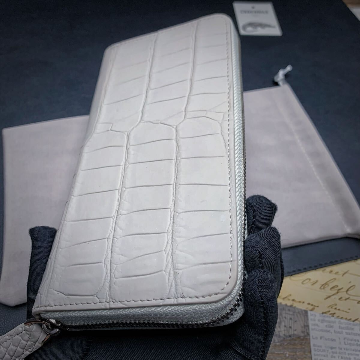 ・クロコダイルと呼ばれている品種のワニ革は人気が高く、独特の模様と凹凸が魅力で、高級ブランド品を中心にクロコダイルが多く使われています。今回はワニ革の代表格である『シャムクロコダイル』のセンターカット腹革のラウンドファスナー財布を出品します。