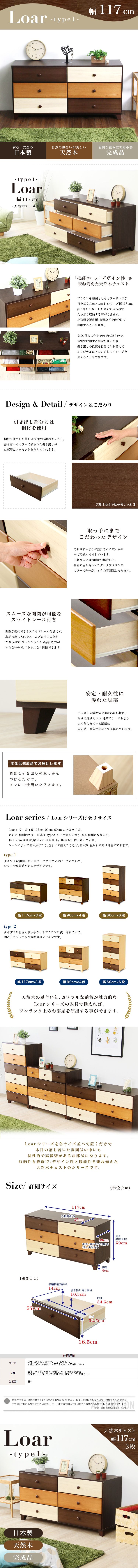 ブラウンを基調とした天然木ワイドチェスト【ロア】3段 幅117cm/タンス/日本製/完成品/収納/デザイン 桐材使用の美しい木目/W120cmタイプzz