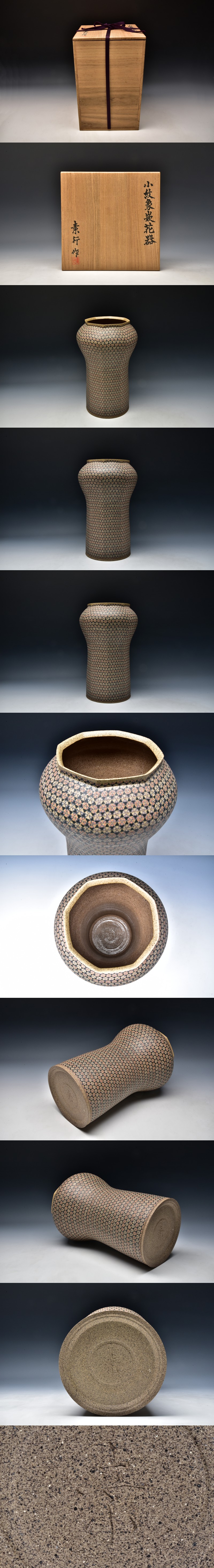 U08882 坂本素行 小紋 象嵌 花器 花瓶 共箱 /3F
