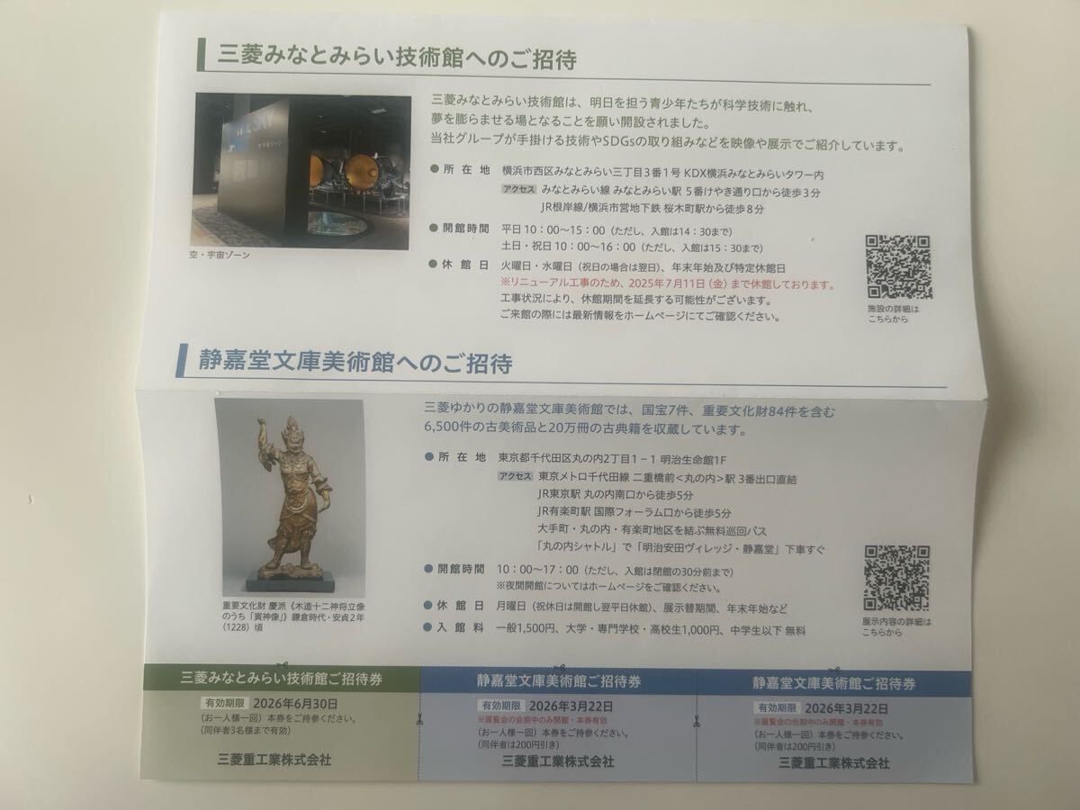 ⑤「三菱みなとみらい技術館」招待券1枚(同伴者3名まで有効) 期限2026年6月30日