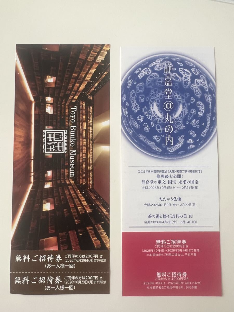 ②「静嘉堂文庫美術館」無料招待券4枚(4名分) 期限2026年3月22日→2枚、6月14日→2枚