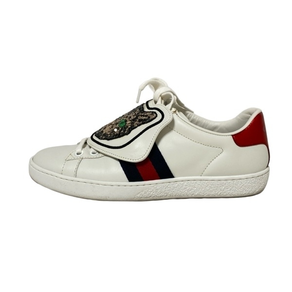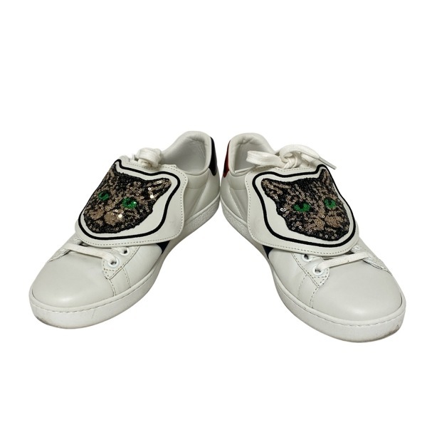 グッチ GUCCI スニーカー 36 506635 Ace レザー 白×ベージュ×マルチ レディース ネコ 靴