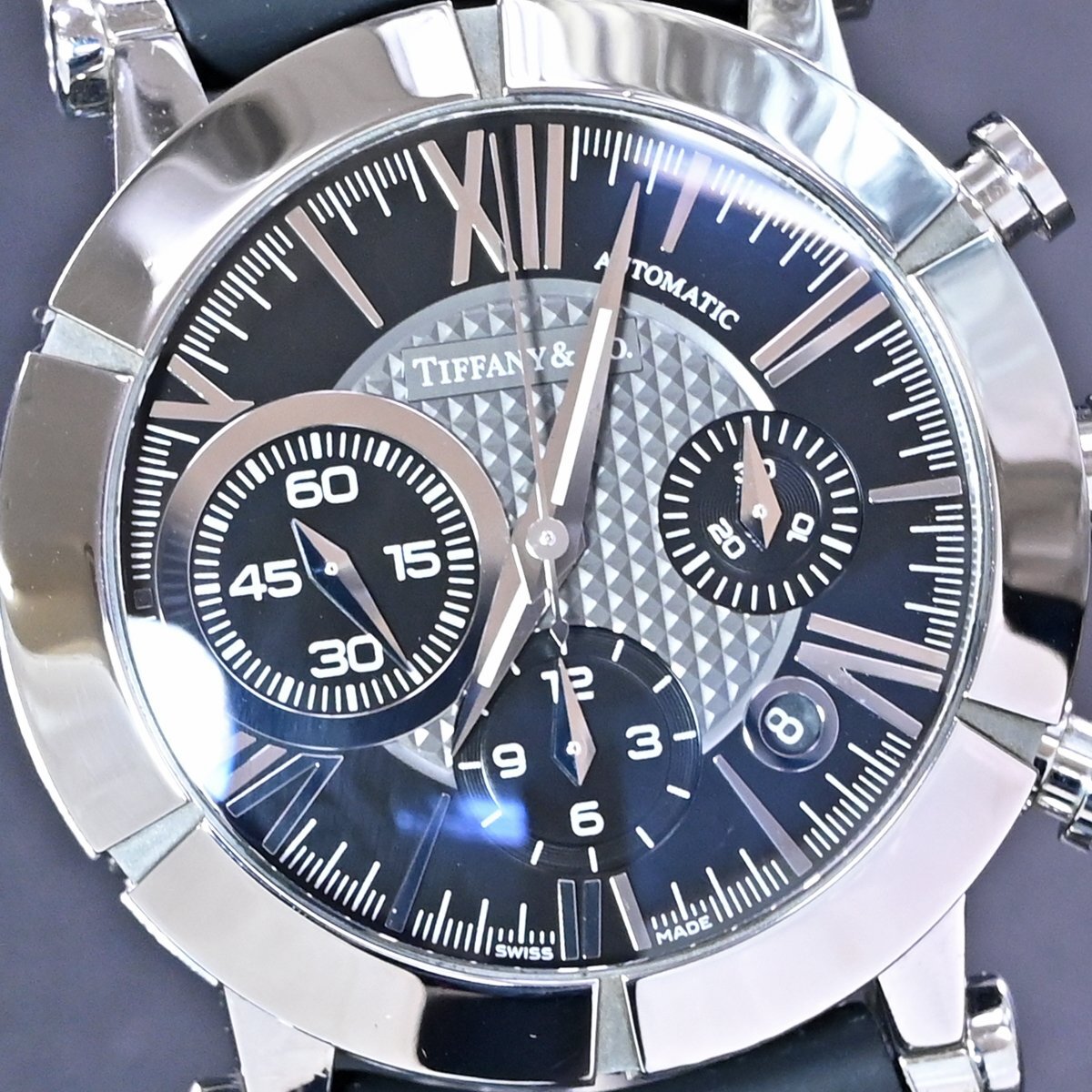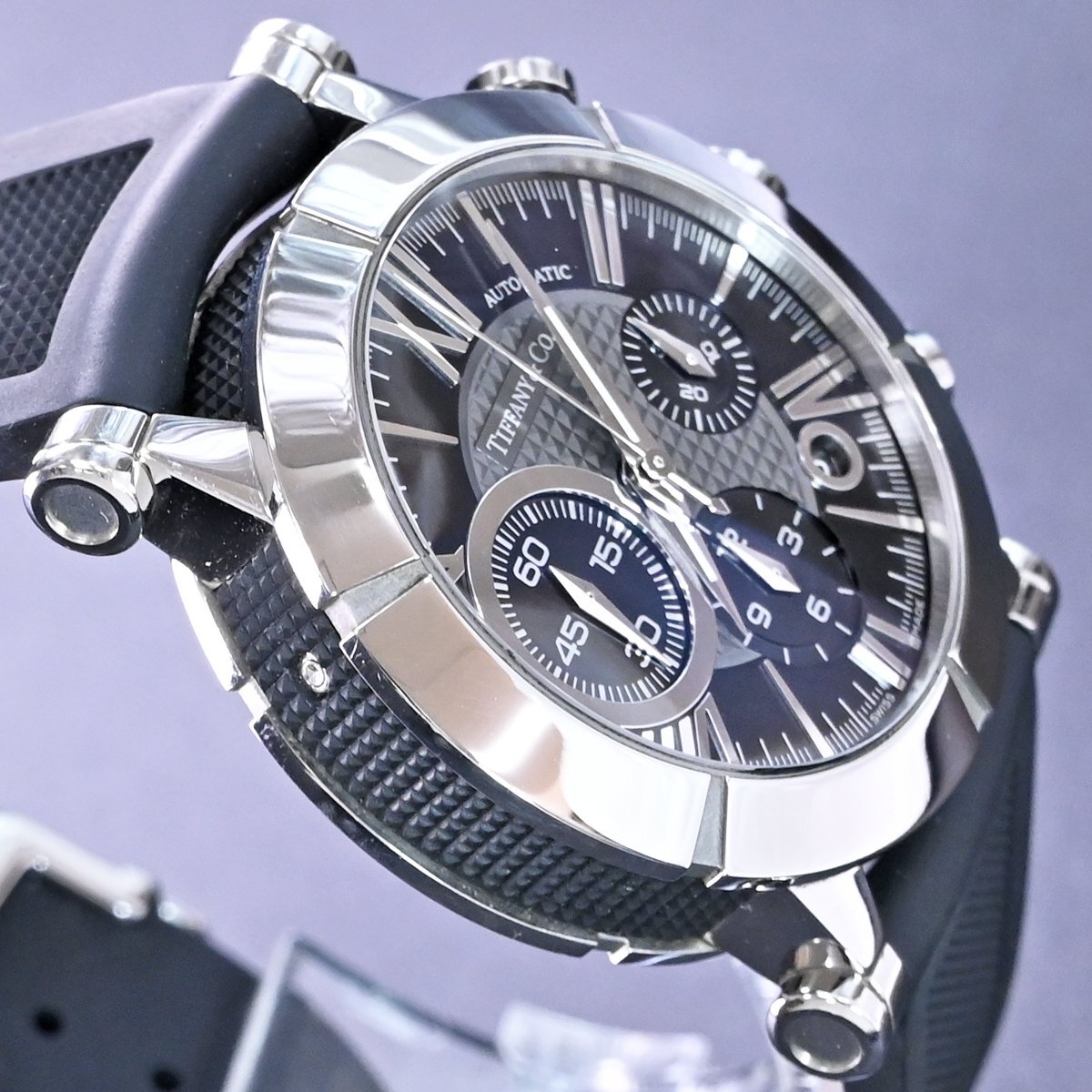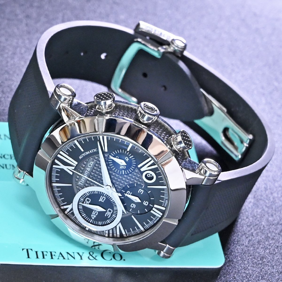 ティファニーの新型 アトラス ジェント クロノグラフ メンズです。 アンダー40mmでの展開が主流だったティファニーから42mmにスケールアップされた新型の「アトラス ジェント クロノグラフ」。 特徴的なスモールセコンドがインパクト溢れる逸品です。 バックスケルトンケースなのでハイスペック クロノグラフムーブメントの動きを目で見てご堪能頂ける一本となっております。 市場でも圧倒的な人気を誇るモデルなのでお探しの方も非常に多いかと思います。 ※基本動作確認済。 |