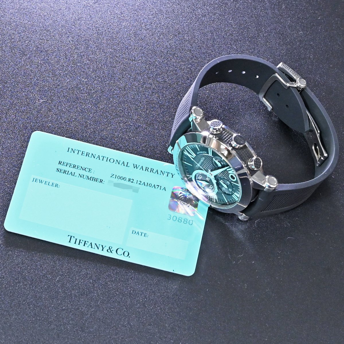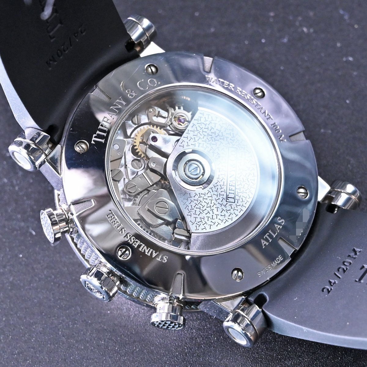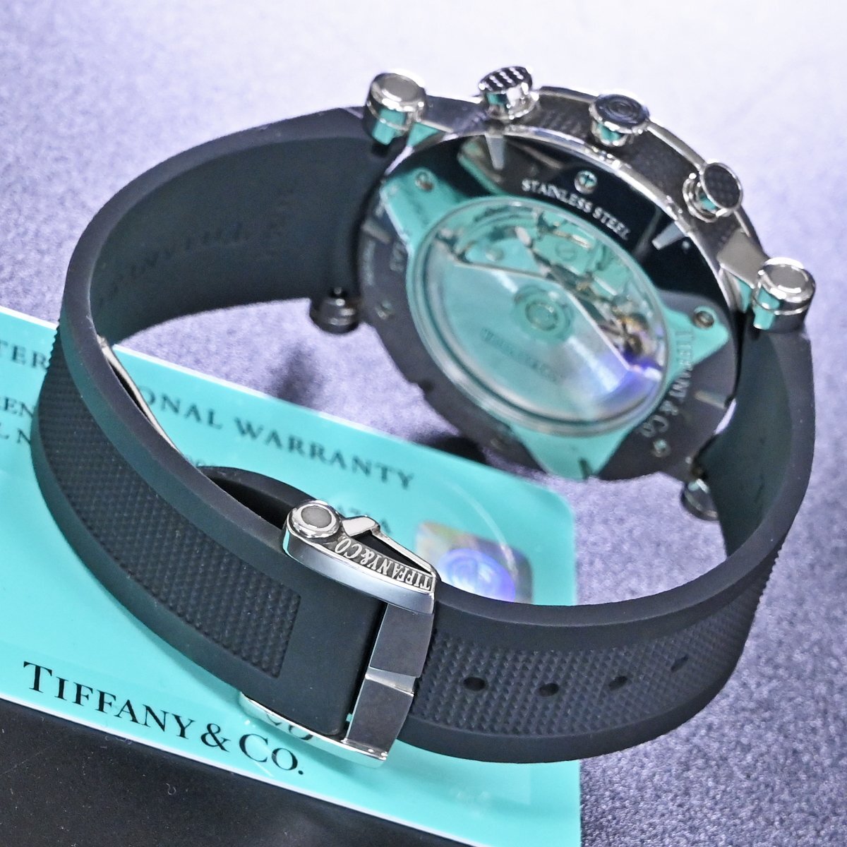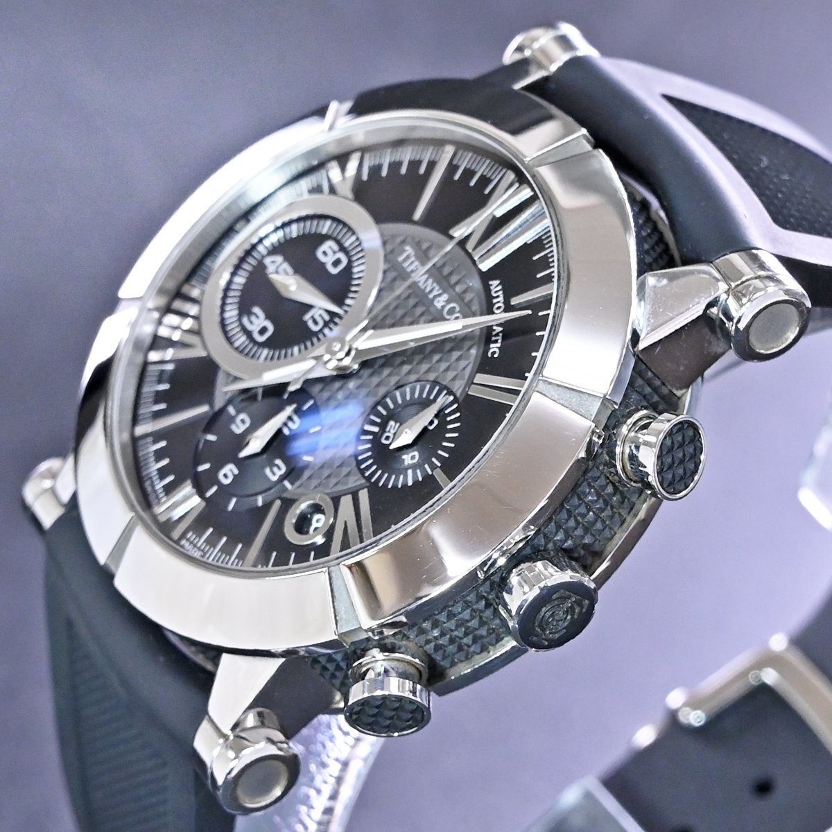 ティファニーの新型 アトラス ジェント クロノグラフ メンズです。 アンダー40mmでの展開が主流だったティファニーから42mmにスケールアップされた新型の「アトラス ジェント クロノグラフ」。 特徴的なスモールセコンドがインパクト溢れる逸品です。 バックスケルトンケースなのでハイスペック クロノグラフムーブメントの動きを目で見てご堪能頂ける一本となっております。 市場でも圧倒的な人気を誇るモデルなのでお探しの方も非常に多いかと思います。 ※基本動作確認済。 |