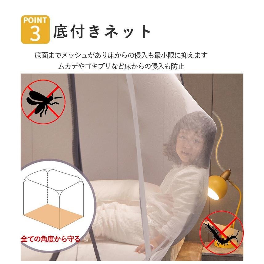 全体で囲まれた細かいネットが蚊やムカデの侵入をブロック!