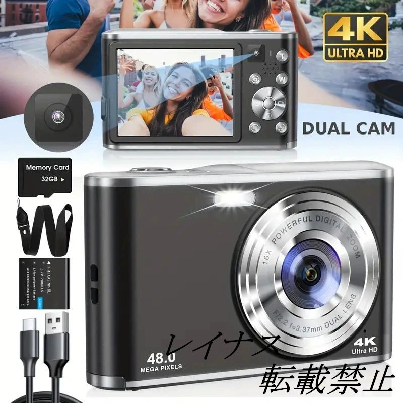 デュアルレンズ高画質カメラ 前後デュアルカメラ搭載 オートフォーカス 学生向けエントリーレベルコンパクトカメラ