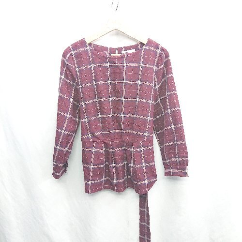 ◇ ⊂ any SiS エニィスィス チェック柄 ウエストベルト 長袖 チュニック サイズ2 ボルドー レディース E