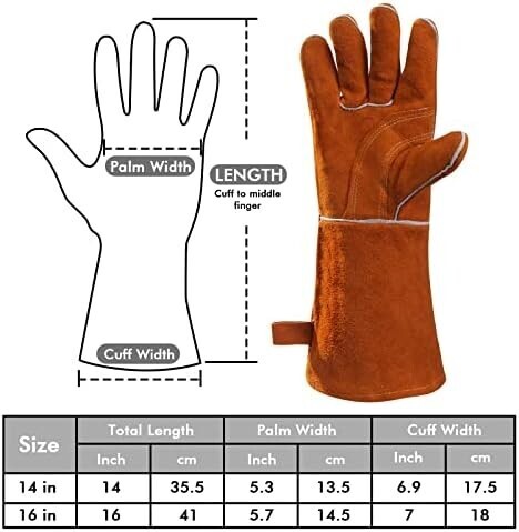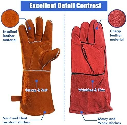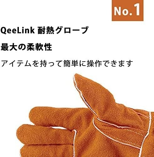 [QeeLink] 耐熱グローブ 本革 牛革 手袋 キャンプグローブ 耐熱 防火手袋 溶接/BBQ/ストーブ/焚き火台/薪ストーブ アウトドア用 作業革手袋