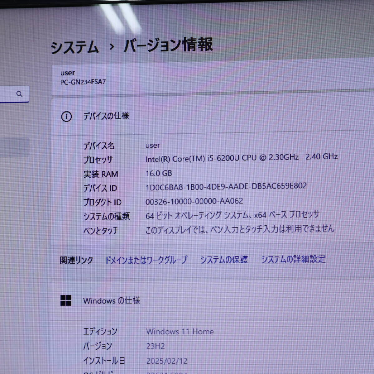 ★超美品 高性能6世代i5!大容量1TB メモリ16GB★GN234F Core i5-6200U Webカメラ Win11 MS Office2019 H&B ノートパソコン★P94238