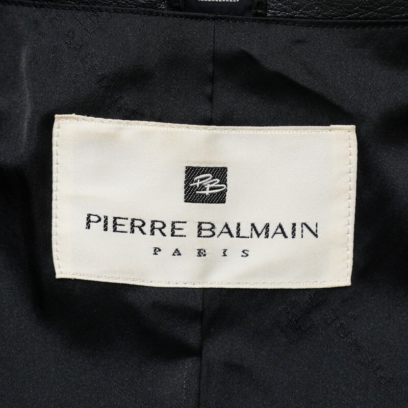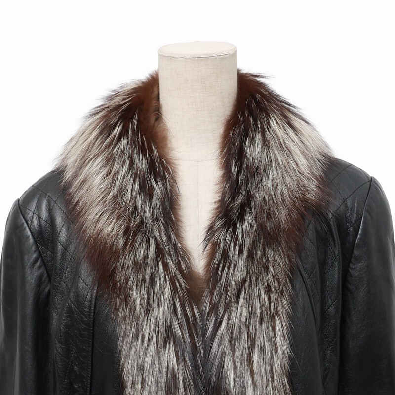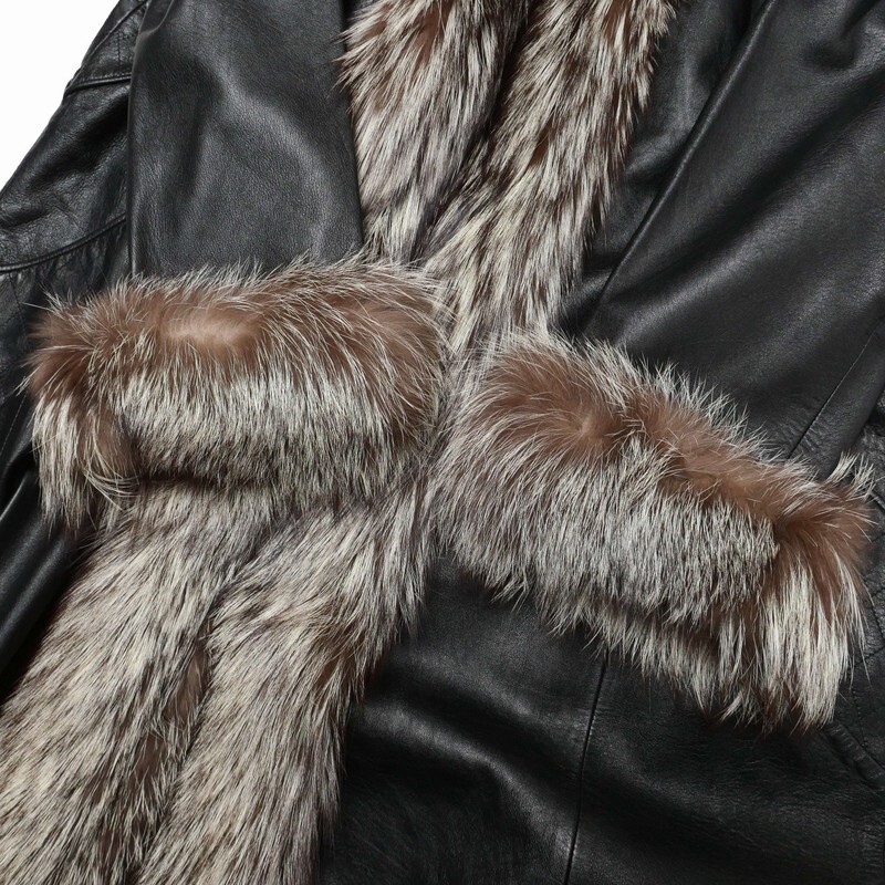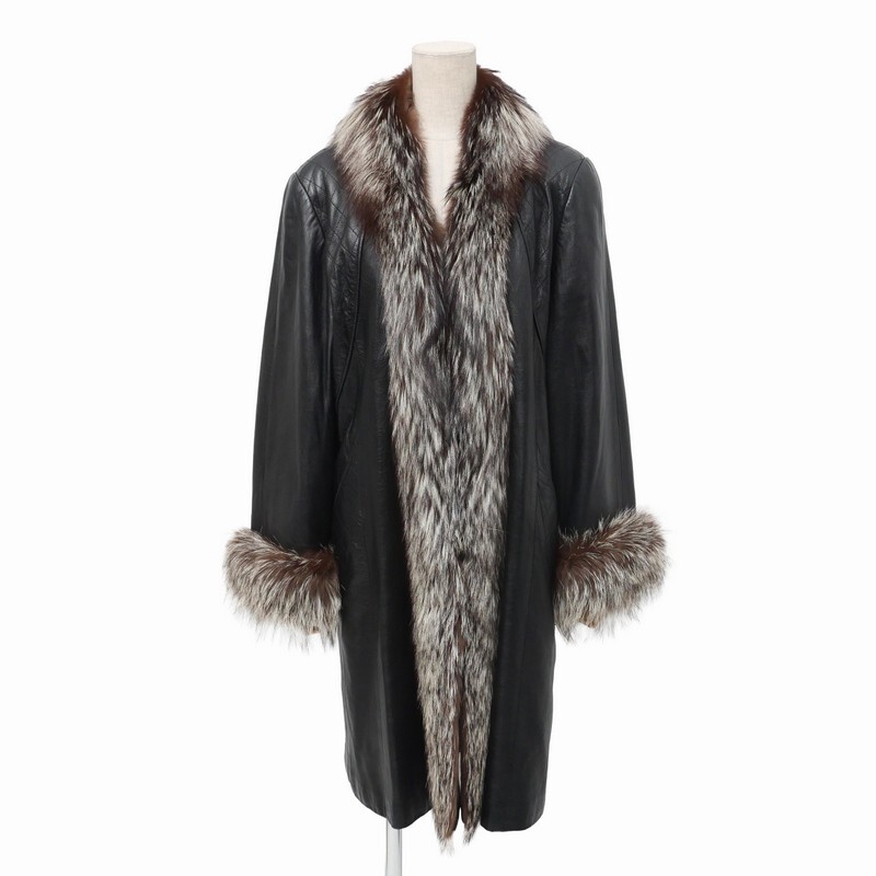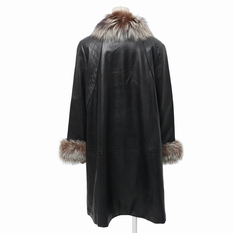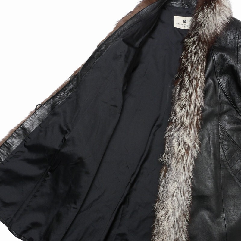 | GS6175■PIERRE BALMAIN ピエールバルマン ラムレザー ロングコート フォックスファー 羊革 サイズF M~L相当 ブラック系 | |||