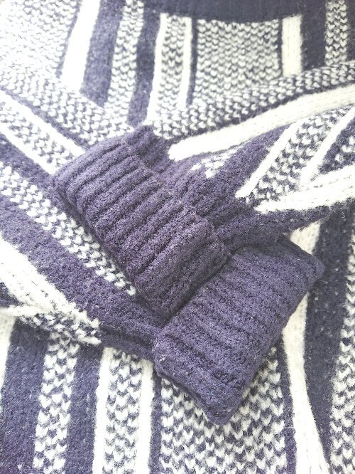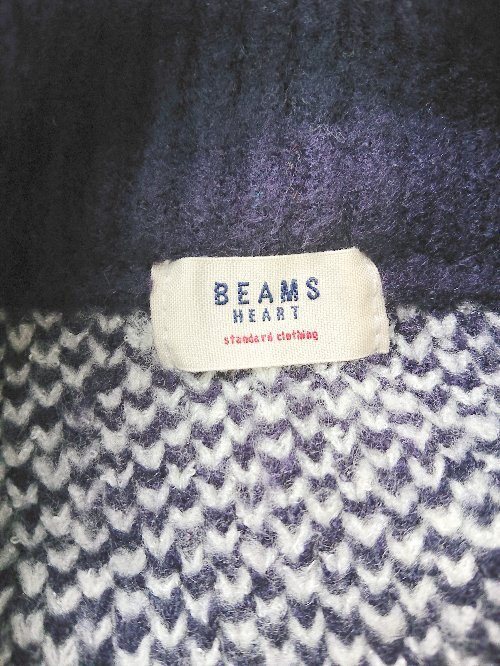 ◇ ⊇ BEAMS HEART ビームス ハート 総柄 ハイネック. 長袖 ニット セーター ネイビー ホワイト レディース E
