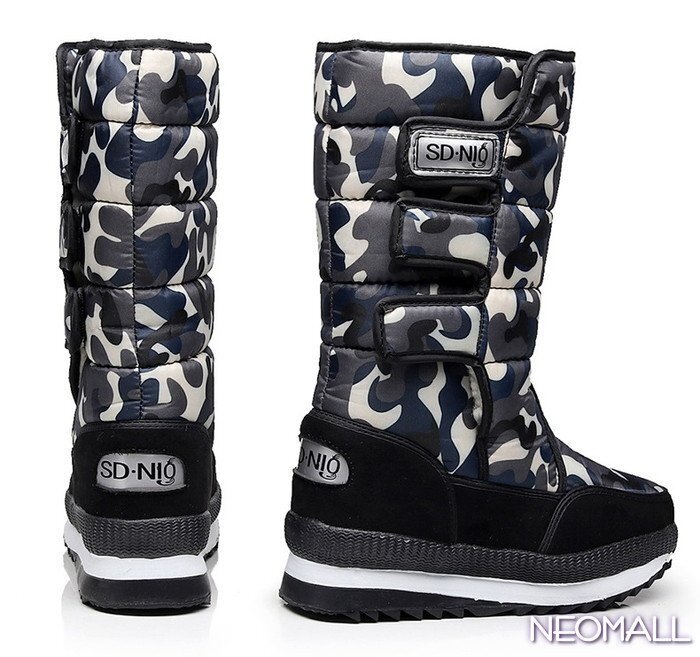 レディース スノーシューズ 【867】 23.0cm 迷彩グレー ムートンブーツ スニーカー ウィンターブーツ 裏起毛 防水 防寒 防滑 冬用靴 綿靴