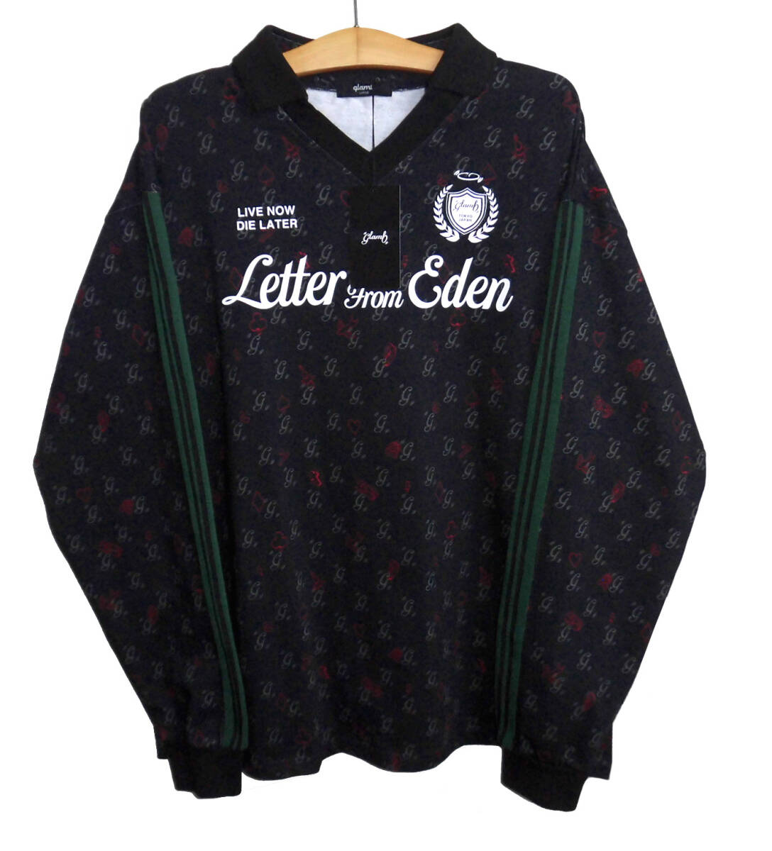 人気ブランド、グラムの2024年秋冬モデルのUKストリートスタイルに呼応するフットボールシャツをストリートに向けて再構築したMonogram Football Cutsew。