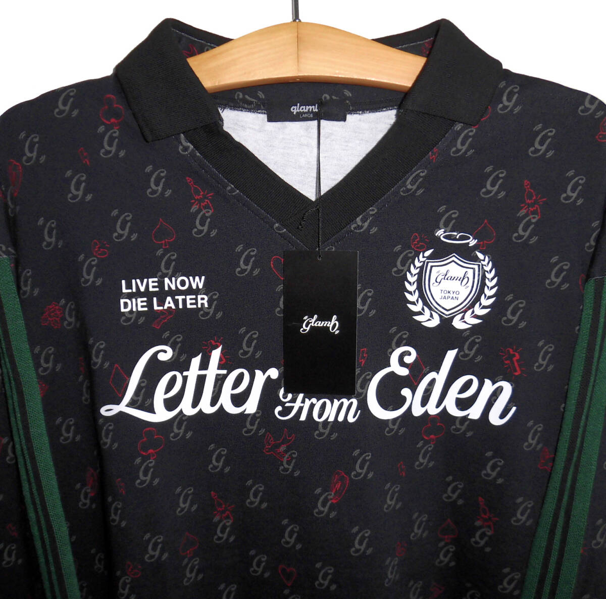 ◆定価1.9万 未使用 glamb グラム 24AW Monogram Football Cutsew モノグラム フットボールシャツ Tシャツ Lサイズ GB0324/CS10 黒