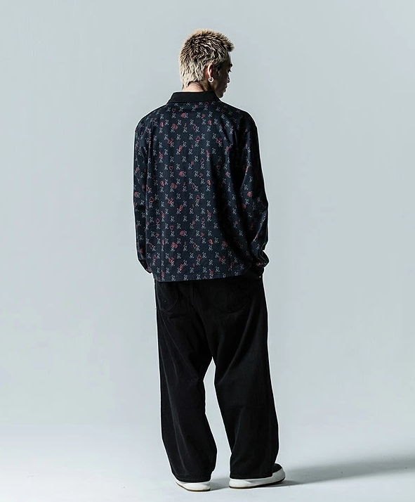ボディにはコットンジャージー素材を使用し、小ぶりな襟を配したVネックにブランドイニシャルを模ったモノグラムを総柄使いしています。