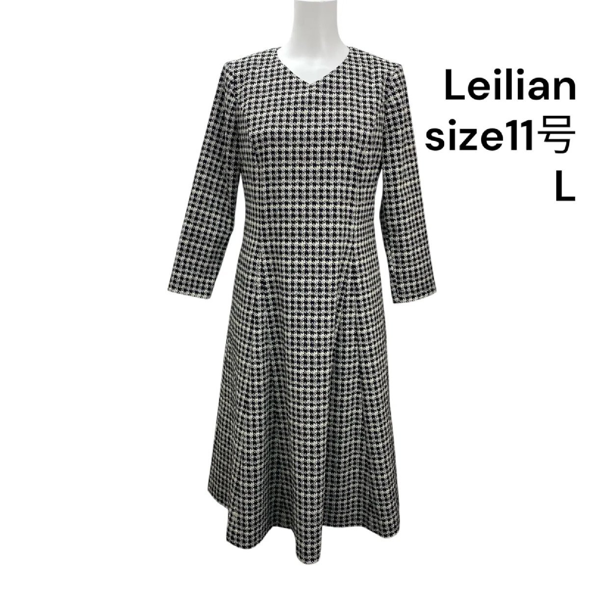レリアン Leilian ワンピース ロング 長袖 コットン 千鳥格子 モノトーン 11号、L レディース S5T366
