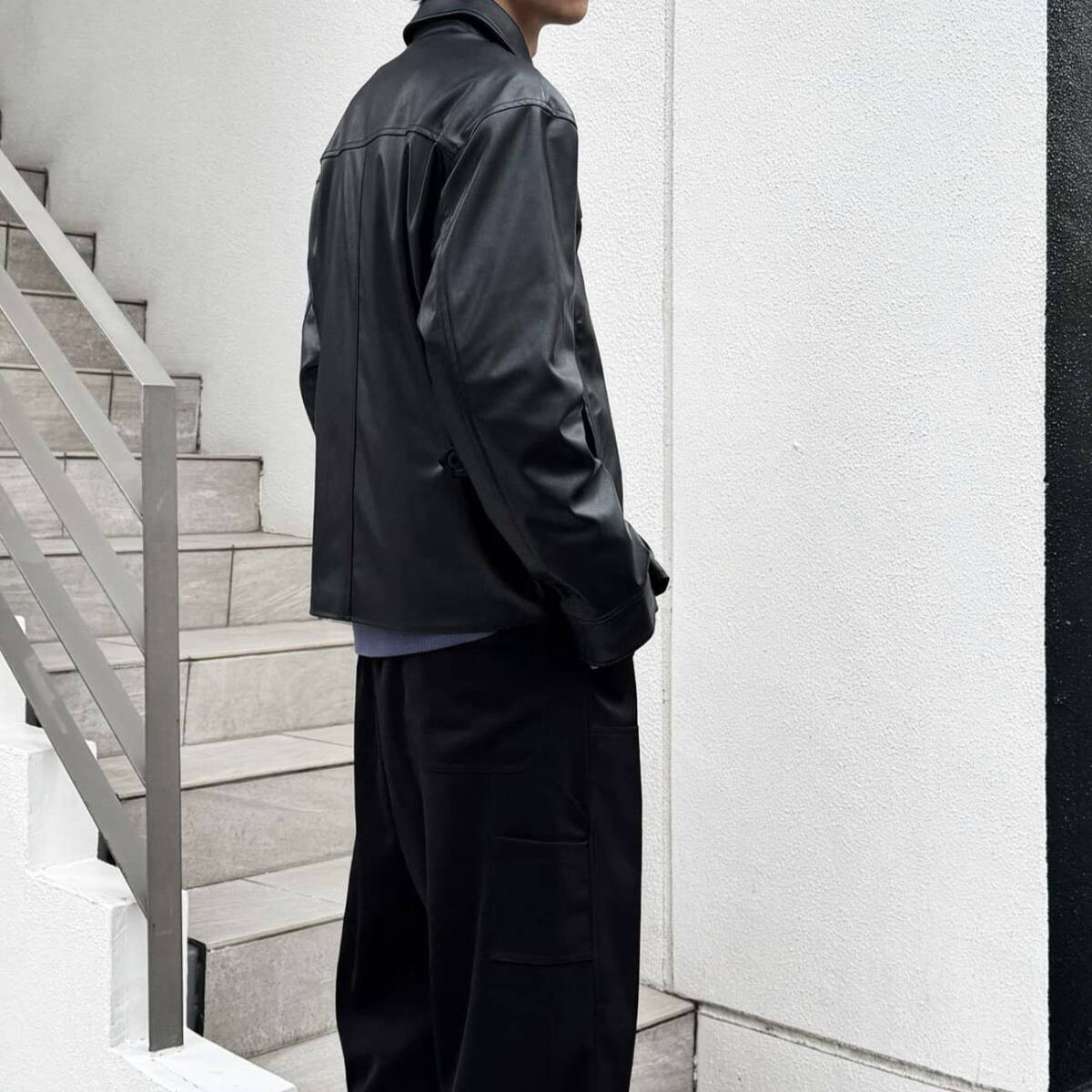 ■フロントは4つポケットと、背面のボタンがデザイン性と実用性を両立。 ■上質なフェイクレザーはなめらかで本革に近いリアルな仕上がり。 ■ミニマルでショート丈なのでレイヤードにもピッタリです。 ■光沢感のあるフェイクレザーは、マットな質感のアイテムと合わせるとバランスがよく決まります。 |