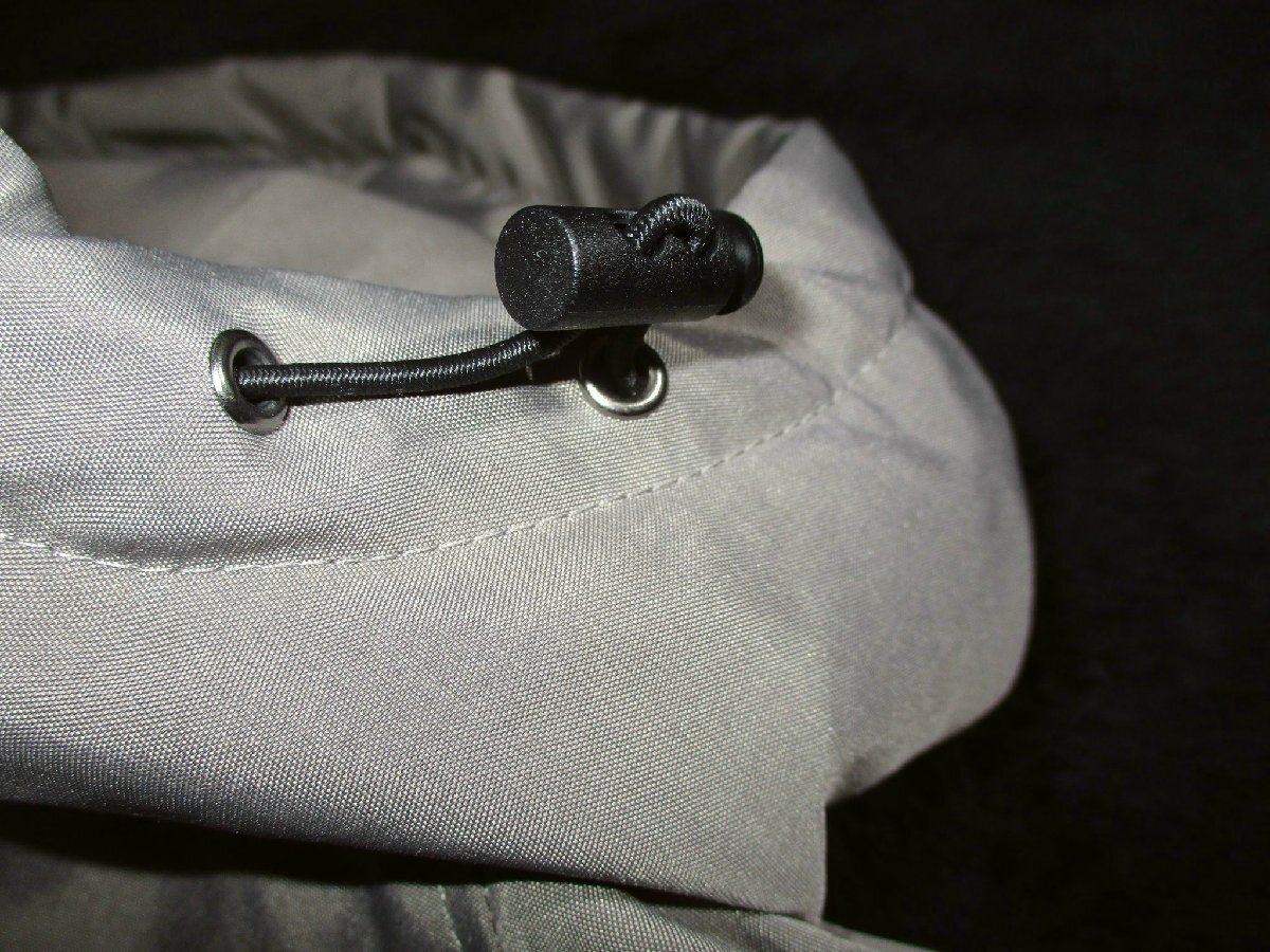 ●フード、ボディすそにゴム製ドローコード(しぼれます)