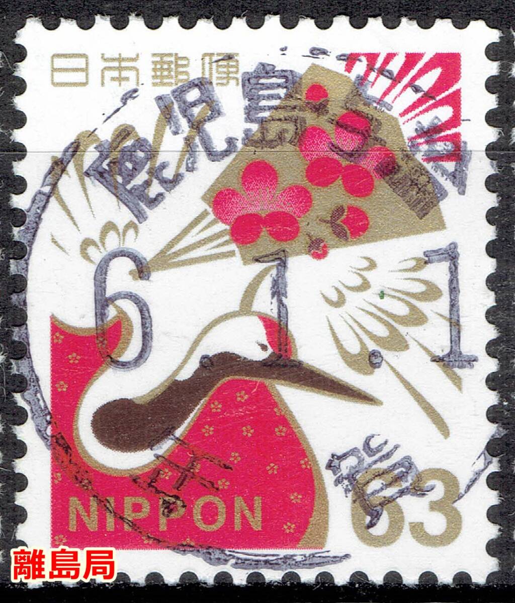 | 【使用済・慶弔切手の年賀印】扇面に梅模様63円(離島局)W | |
