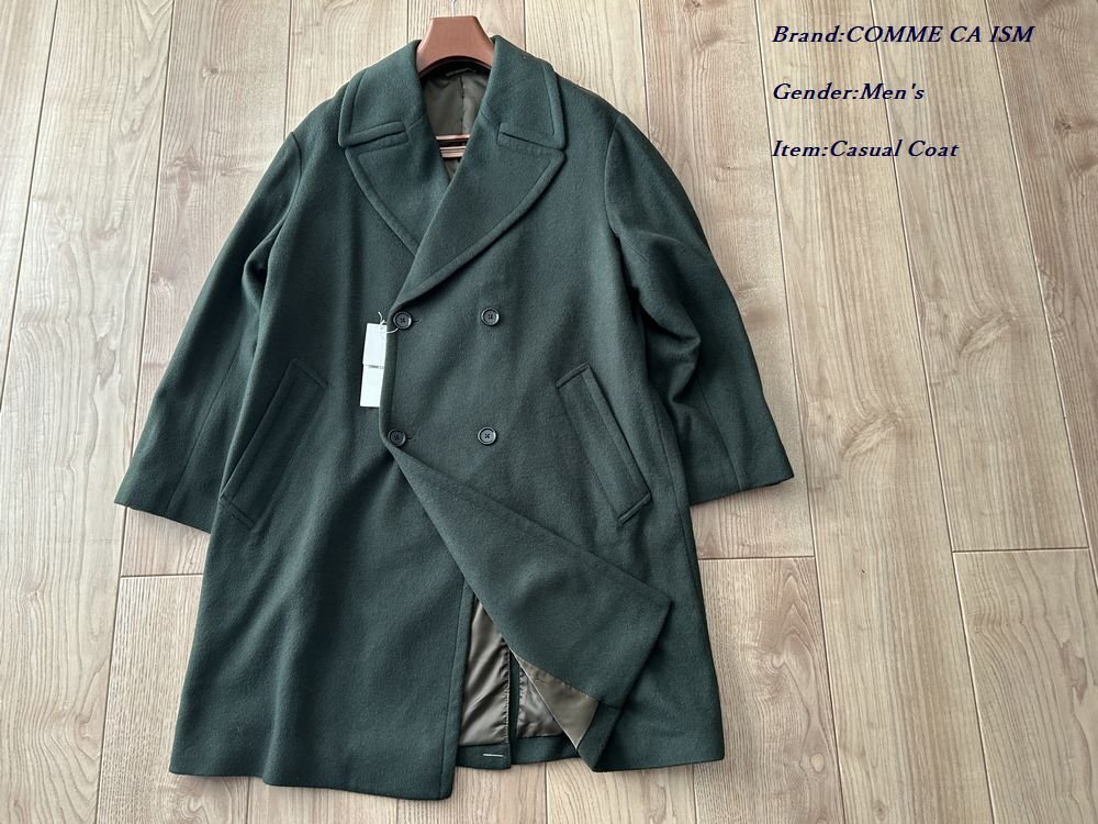 新品 COMME CA ISM MEN コムサイズム メン カシミヤ混 ダブルブレスト Pコート 21カーキ Sサイズ 20WA05 定価39,800円