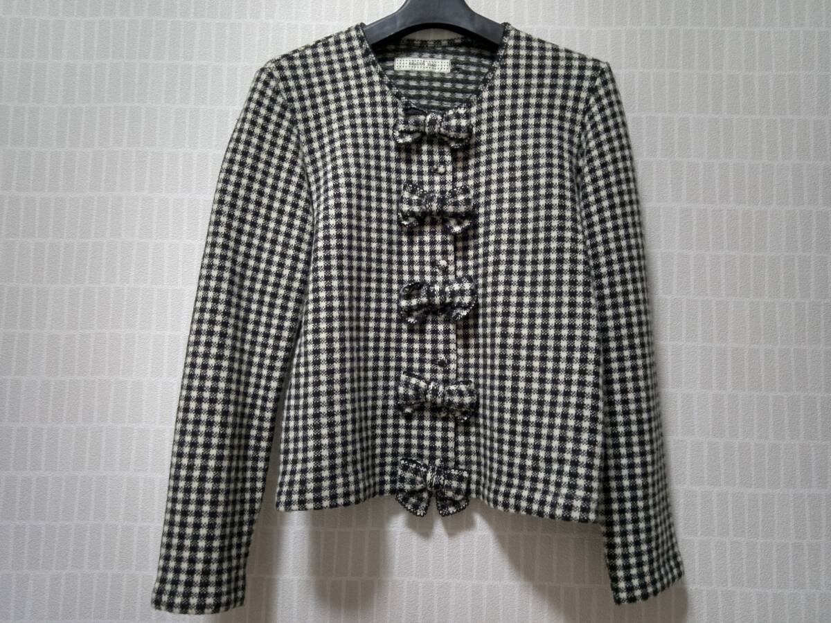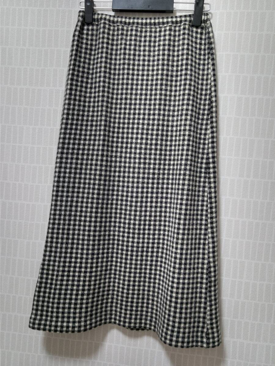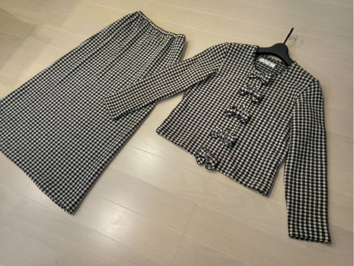 上下2点セット 黒白 チェック柄 ウール リボン付カーディガン&ウエストゴム スカート ピンクハウス系