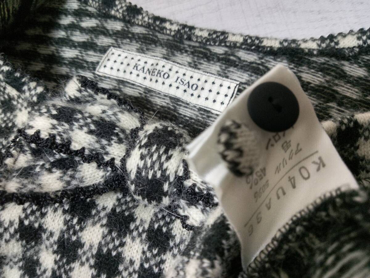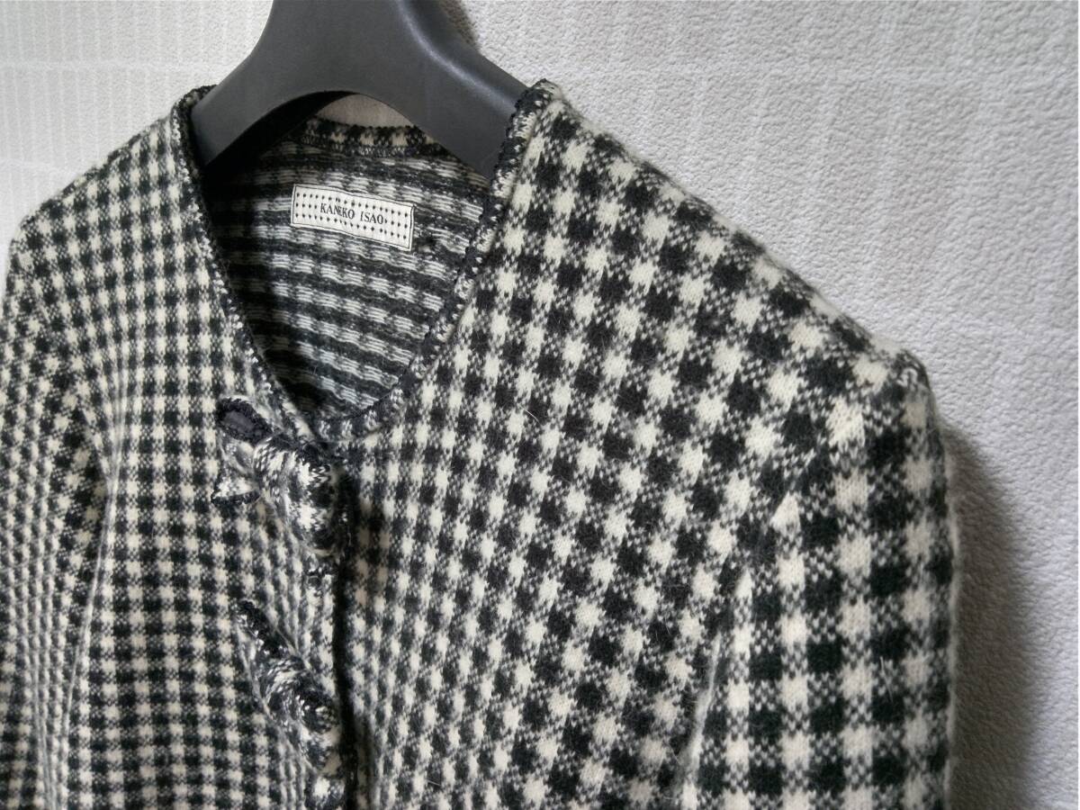 KANEKO ISAO カネコイサオ 上下2点セット 黒白 チェック柄 ウール リボン付カーディガン&ウエストゴム スカート ピンクハウス系