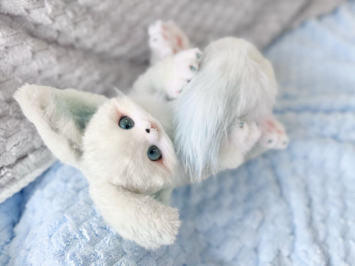 主にフェイクファーを使用した可動するアートドール(ぬいぐるみ)です。