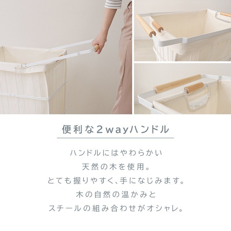 \大容量61Lでたっぷり収納!取っ手付き&360度回転キャスターで移動もラクラク/ 開口部が広いので物が取り出しやすく 耐荷重約15kgと家族分の洗濯ものもまとめて入ります。 シンプルなデザインなのでお部屋のインテリアにも馴染みます。 360度キャスター付きでスムーズに移動ができます。 ストッパー付きなので、安全面も安心◎ 洗濯ものが外から見えないので、クリーニングやコインランドリーに持っていく際にも便利です。 ファブリックカバーは内側にラミネート生地を使用。カビや汚れに強い撥水加工を施しています。 丈夫なスチールフレームなので、さびにくく、長くお使い頂けます。 【商品仕様】 ・カラー:ホワイト ・サイズ:(約)幅31x奥行48x高さ66cm ・重量:(約)3.2kg ・耐荷重:(約)15kg ・容量:(約)61L ・素材:スチール(粉体塗装)、他 【注意事項】 ・スチール製の為、浴室ではご使用いただけません。 ・商品は、モニターによって色合いが異なって見える場合があります。 ・仕様・デザインは改良のため予告なく変更することがあります。 (FAE006WH) |