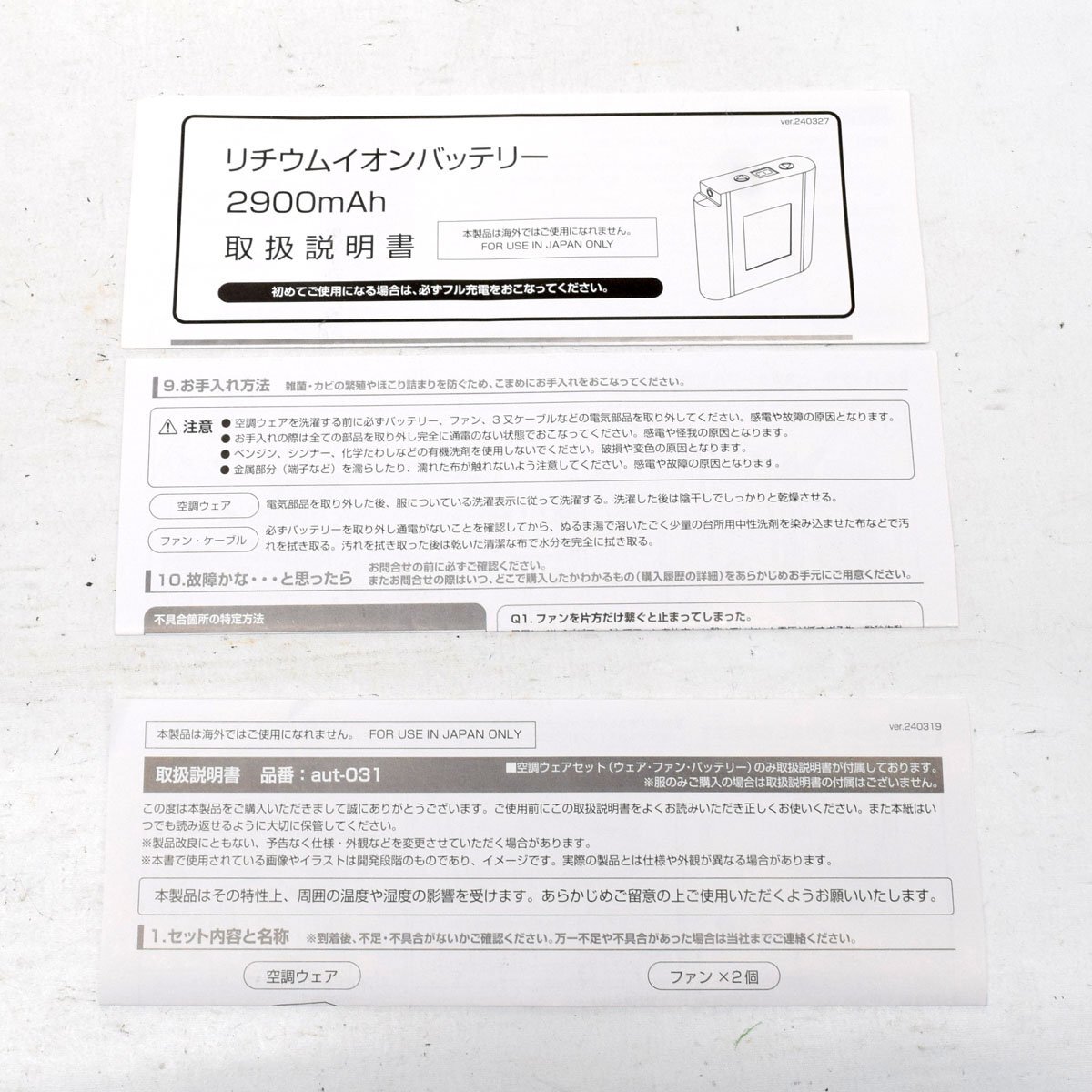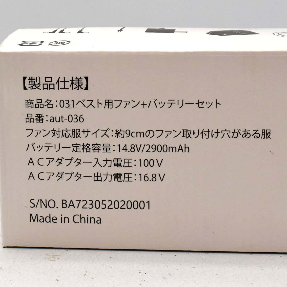 | aut-031 空調ベストブルー 2L aut-036 031ベスト用ファン+バッテリーセット ※写真に写っているもので全てになりますので、ご確認お願いします。 |