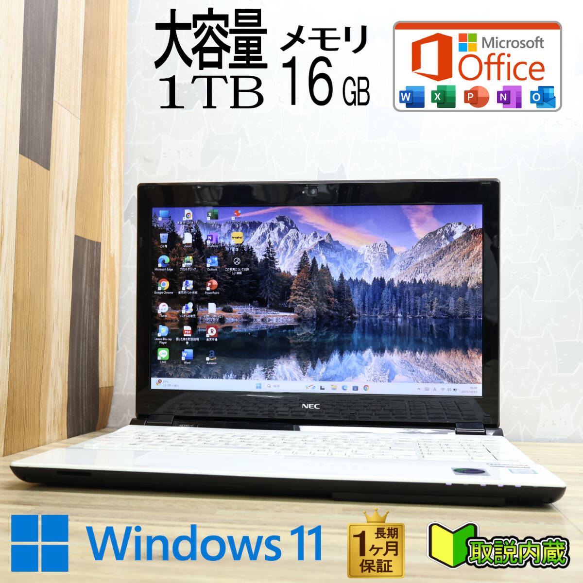 ★超美品 高性能6世代i3!大容量1TB メモリ16GB★NS350C Core i3-6100U Webカメラ Win11 MS Office2019 H&B ノートパソコン★P94093