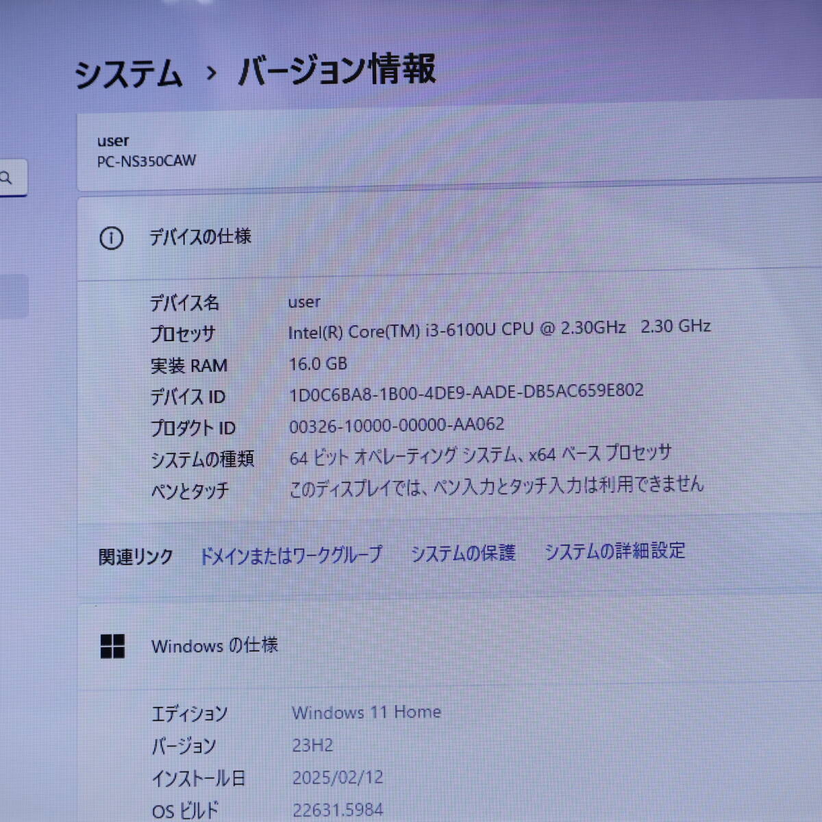 【メーカー・型名】NEC LaVie NS350C