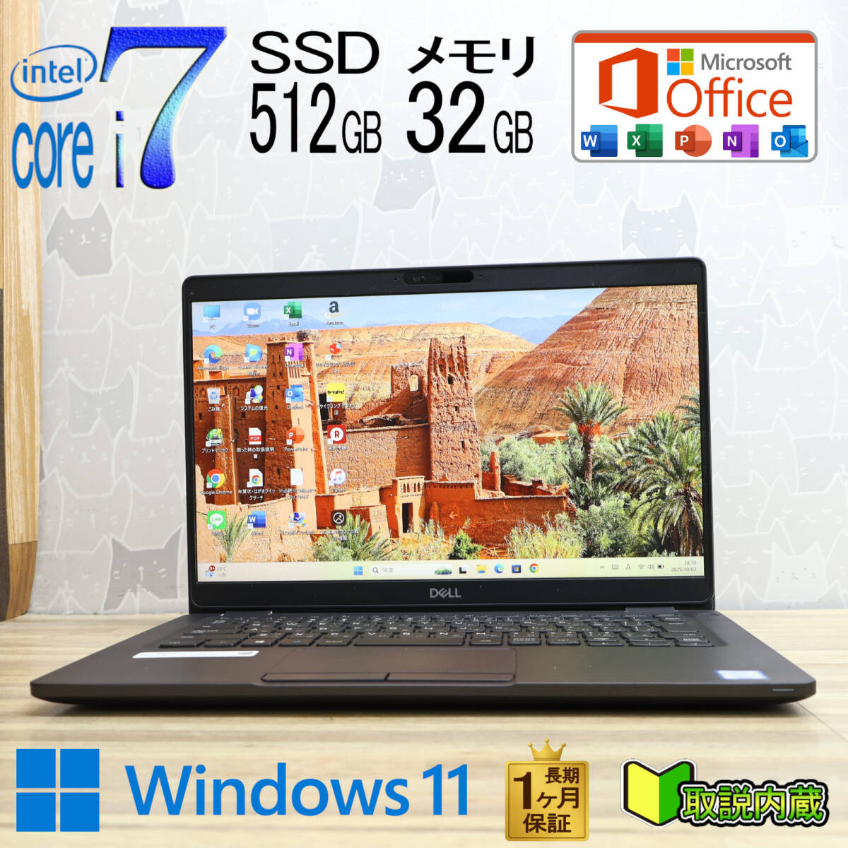 ★超美品 最上級8世代4コアi7!NVMeSSD512GB メモリ32GB★LATITUDE5300 Core i7-8665U Webカメラ TypeC Win11 MS Office2019 H&B★P93598