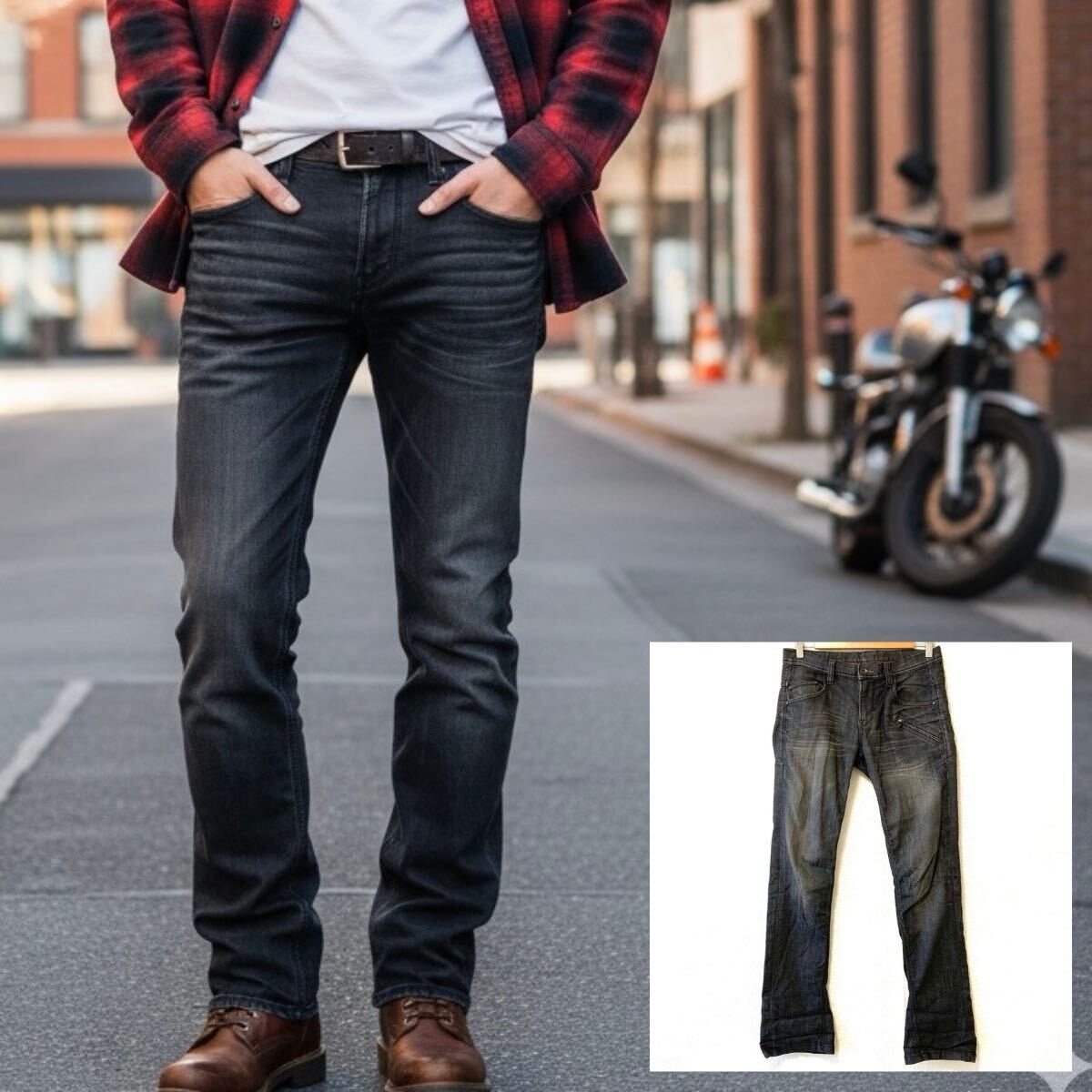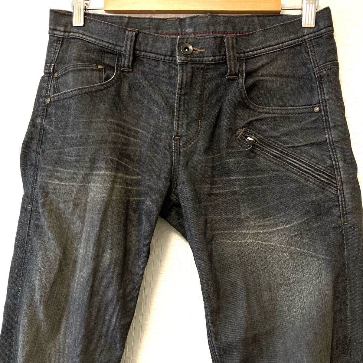 程よいウォッシュ加工とヒゲ加工のデニムパンツです。こなれ感のあるお洒落なデザインでコーディネートの主役となるアイテム!