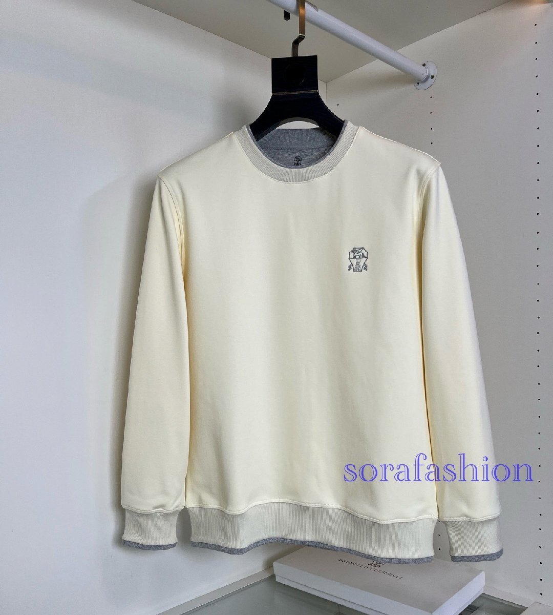 ブルネロクチネリ Brunello Cucinelli メンズ T-シャツ 長袖 丸首 トップス カットソー クルーネック シンプル 通気性 イタリア 秋物 コットン トレーナー 紳士服 パーカー スウェット プルオーバー スポーツウェア カジュアル