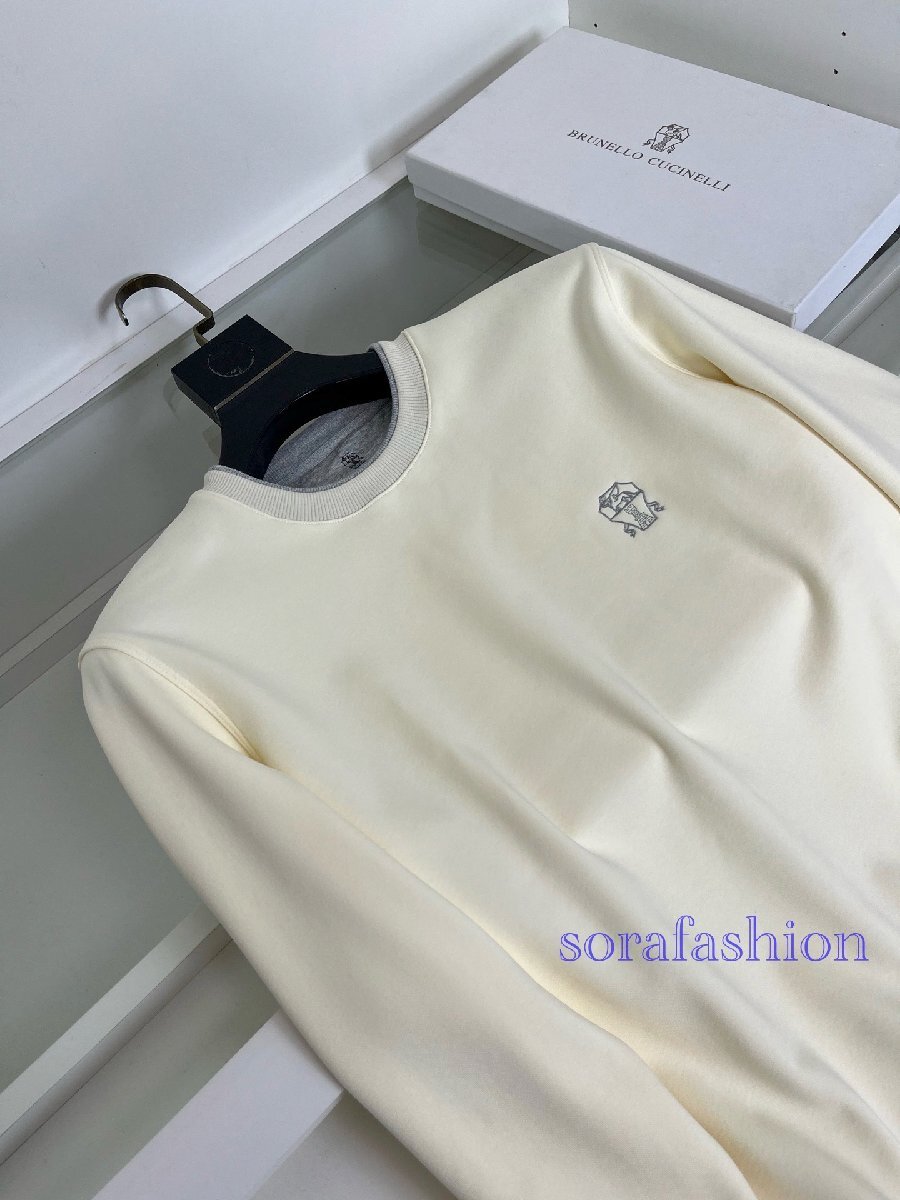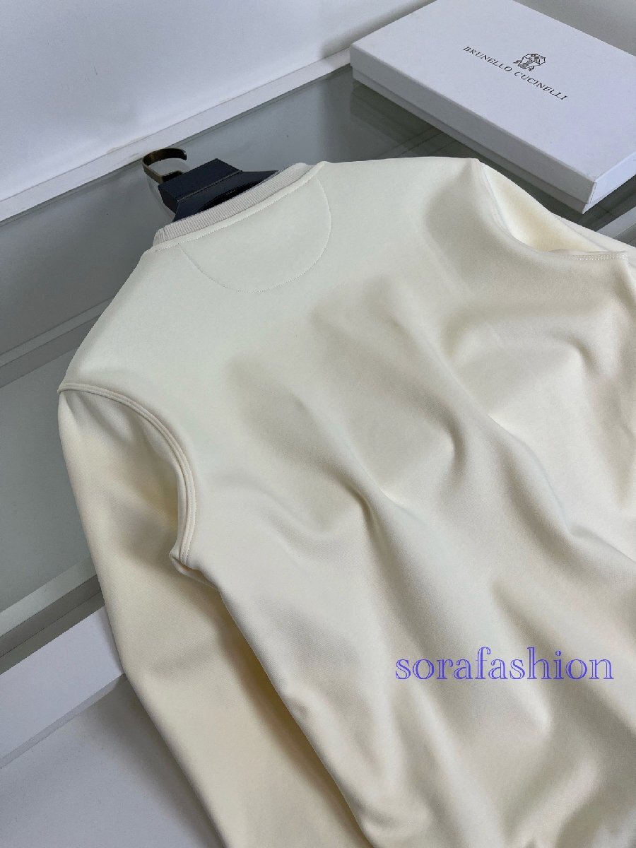 BRUNELLO CUCINELLI(ブルネロ クチネリ) メンズスウェット プルオーバー スポーツウェア ベージュ Lサイズ トップス 丸首 長袖T-シャツ 綿