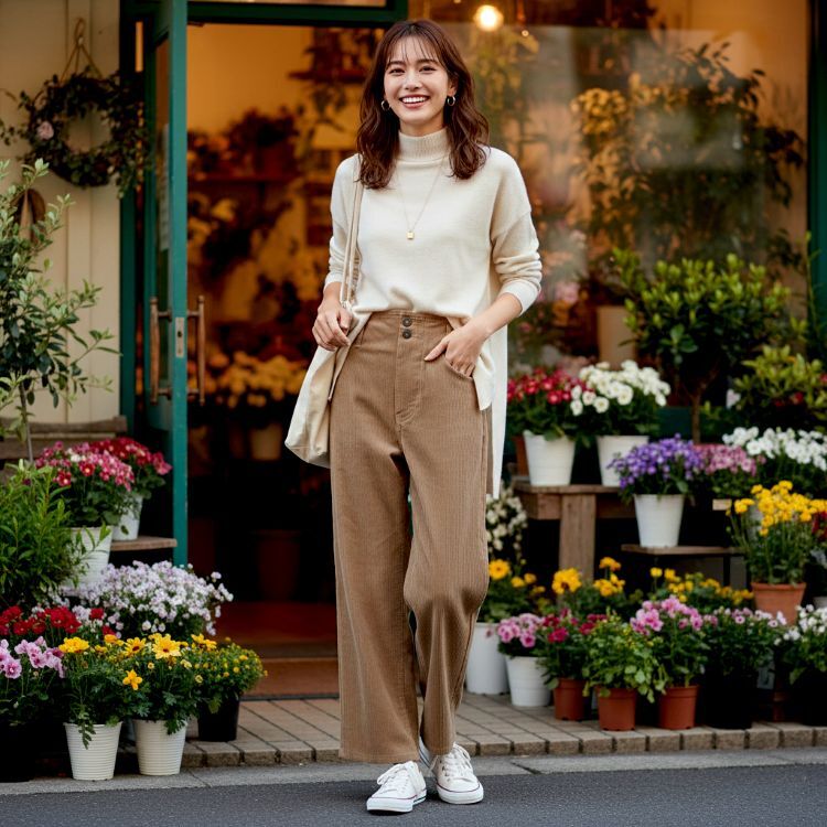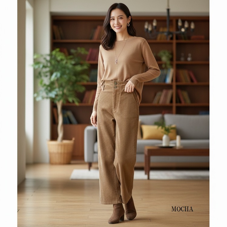 カジュアルながらも上品な表情を持つコーデュロイ素材を、トレンドのワイドシルエットで仕上げました。