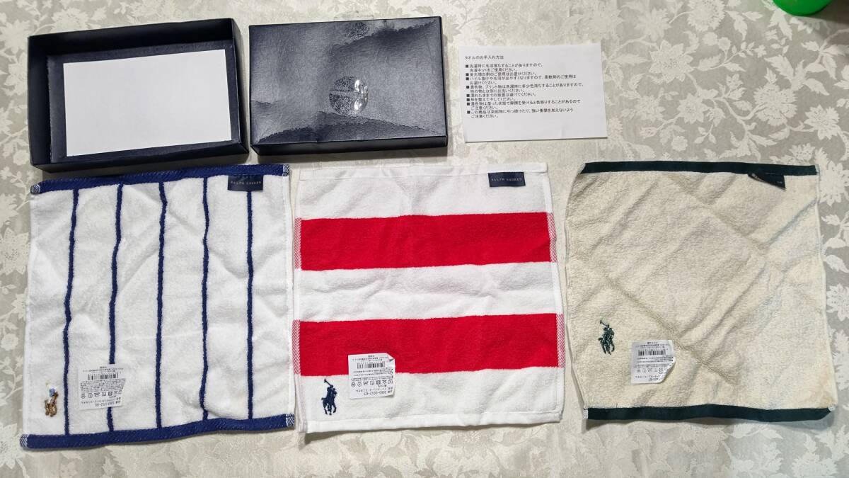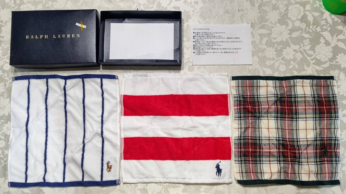 1202-14 ラルフローレン ミニタオル ハンカチ(25.5×25.5㎝綿100%)3枚セット 箱入り