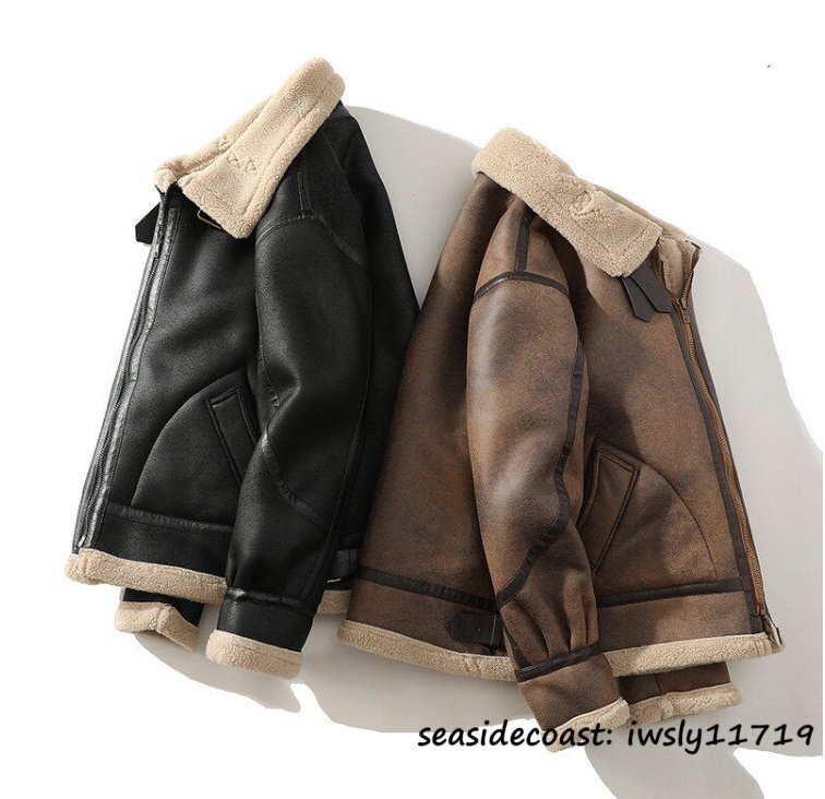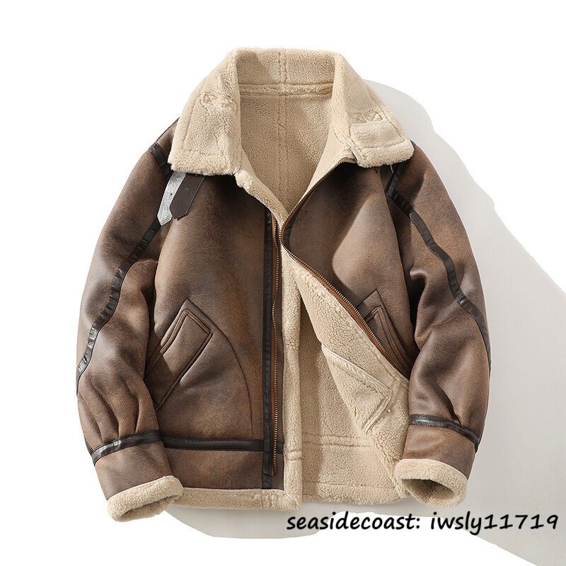 最上級◆超希少 ムートンコート レザージャケット メンズ 厚手 防寒 コート ライダース フライトジャケット 冬新品 ブルゾン ブラウン M
