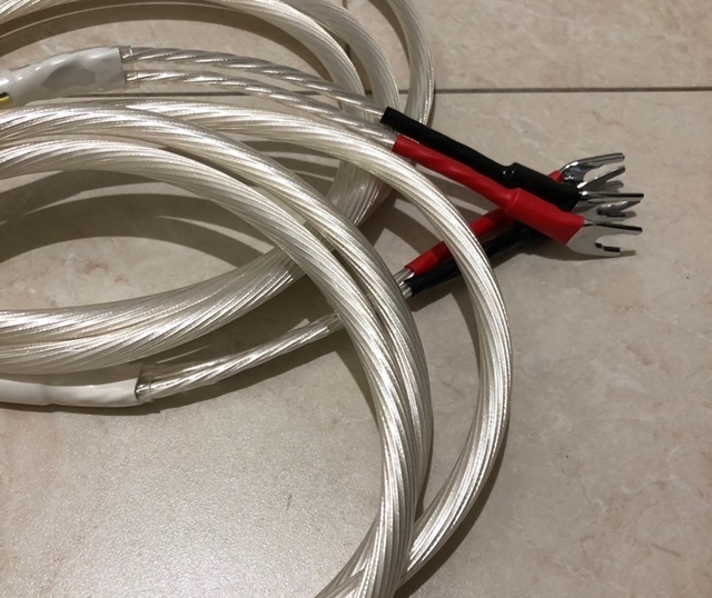 ◆美品◆単結晶 OCC銀線 HIFI スピーカーケーブル  2mペア Yラグ端子 良い音 Nordost Odinと略同じ素材
