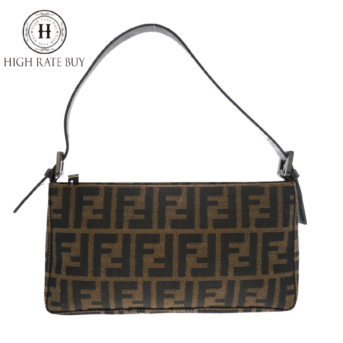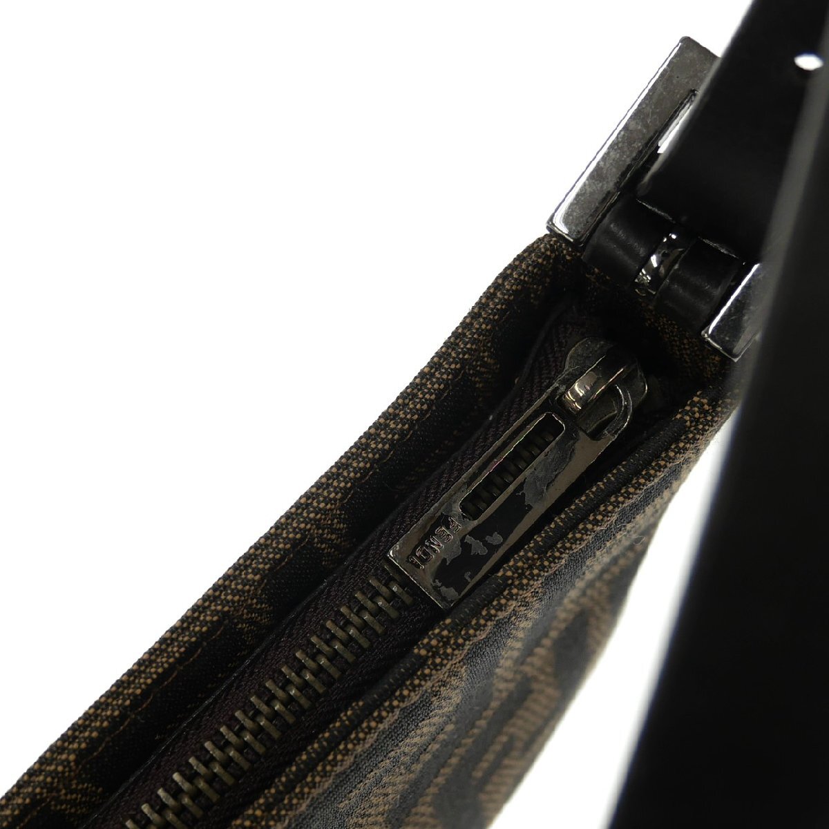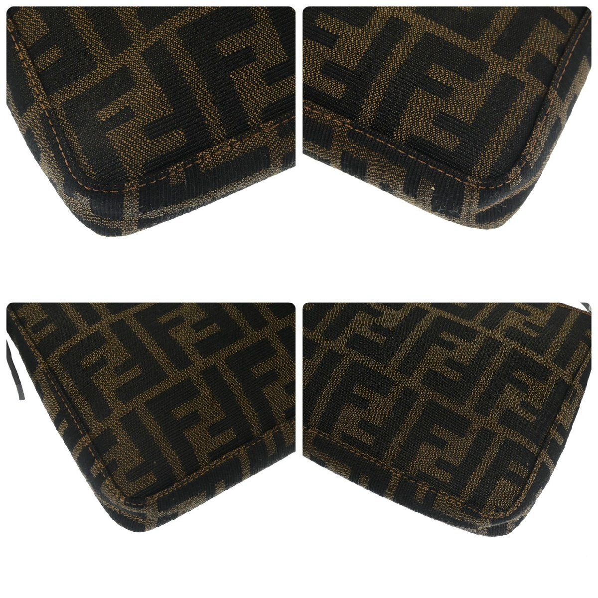 1円スタート FENDI フェンディ ズッカ柄 ミニハンドバッグ アクセサリーポーチ ナイロンキャンバス レディース ブラウン FFロゴ