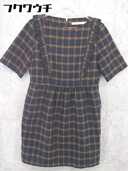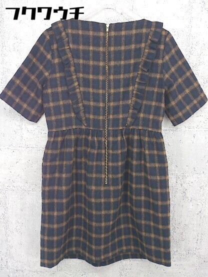 ◇ Khaju カージュ チェック 半袖 ミニ チュニック ワンピース ネイビー ベージュ レディース