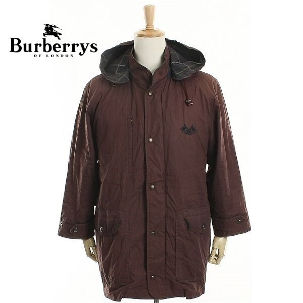 A4420/美品 秋冬 BURBERRY バーバリー コットン チェック フード ライナー付き ステンカラー ダウンコート M 赤 茶/メンズ ジャケット