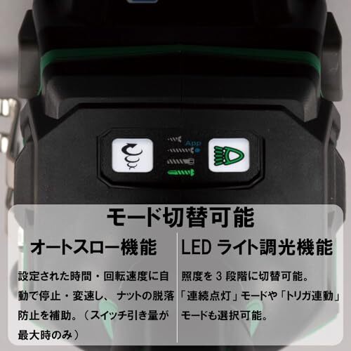 HiKOKI TOOLSアプリに新機能「細ビスモード」が追加!デリケートな作業でもカムアウトを低減。「LEDライト調整機能」も追加され、連続モードの点灯時間や照度を調整できるようになりました。