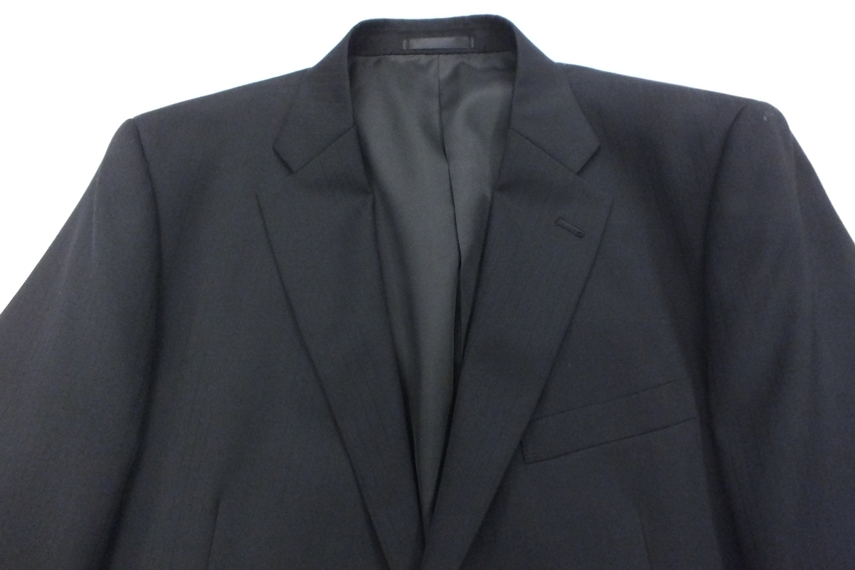 シーズン:秋冬春 サイズ:E6(胸回109・腰回109・身長175) 上着デザイン:シングル2ボタン ベンツ:センターベンツ 裏仕様:総裏仕様 パンツ:ワンタッグ膝あて付き 色:ネービー系 柄:無地感覚のドビー縞 表素材:毛50/ポリエステル50 胴裏:ポリエステル100 縫製:中国縫製 採寸の方法←ここをクリックしてください。 詳細な寸法 E5(胸囲106-腰回106-身長170) 上着部分:胸囲127・胴廻り114・着丈72・肩幅49.6・袖丈59 パンツ部分:ウエスト106・股上32・股下87・渡り巾38.5・膝巾26.6・裾巾22.8 E6(胸囲109-腰回109-身長175) 上着部分:胸囲129・胴廻り116・着丈74・肩幅50.4・袖丈60.5 パンツ部分:ウエスト109・股上32.5・股下89・渡り巾39・膝巾27・裾巾23.1 E7(胸囲112-腰回112-身長180) 上着部分:胸囲131・胴廻り116・着丈76・肩幅51.2・袖丈62 パンツ部分:ウエスト112・股上33・股下91・渡り巾39.5・膝巾27.4・裾巾23.4 注意)数字は何れもcmに成ります。 | ||||