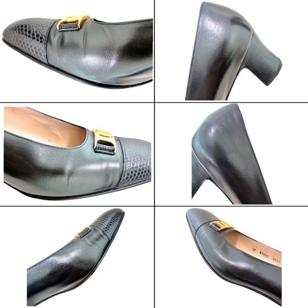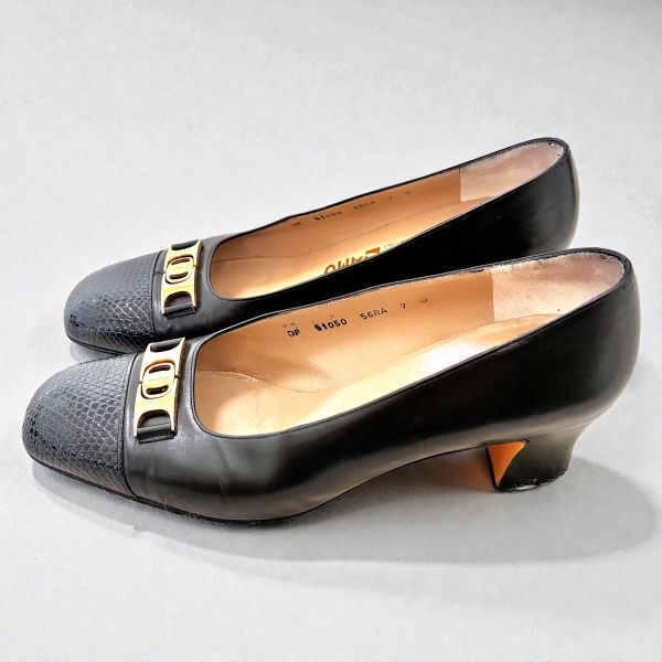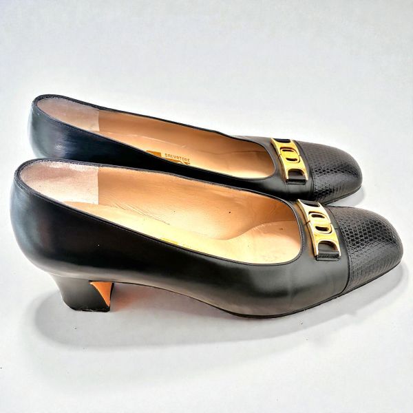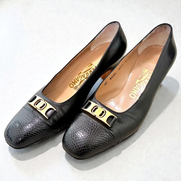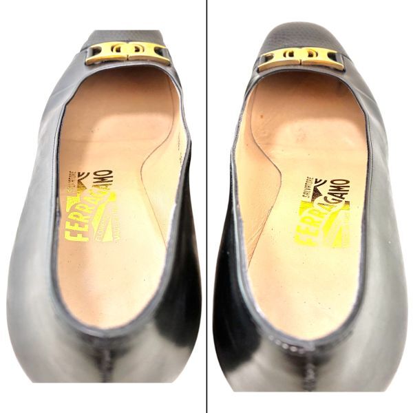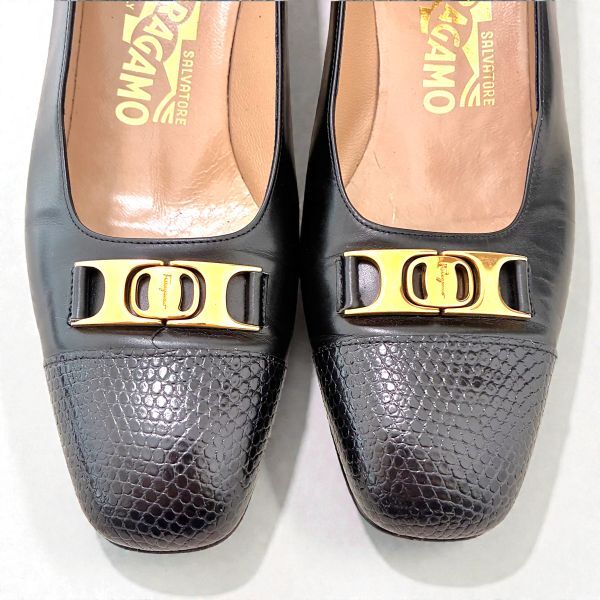 Salvatore Ferragamo サルヴァトーレフェラガモ パンプス ヴァラ クロコ型押し ブラック 黒 7サイズ レザー